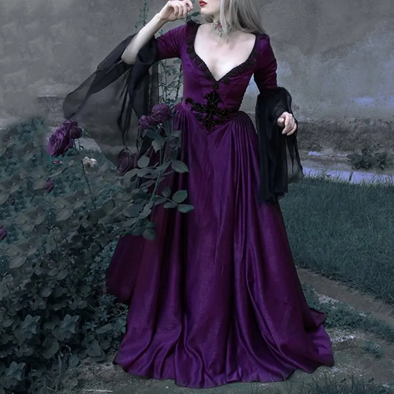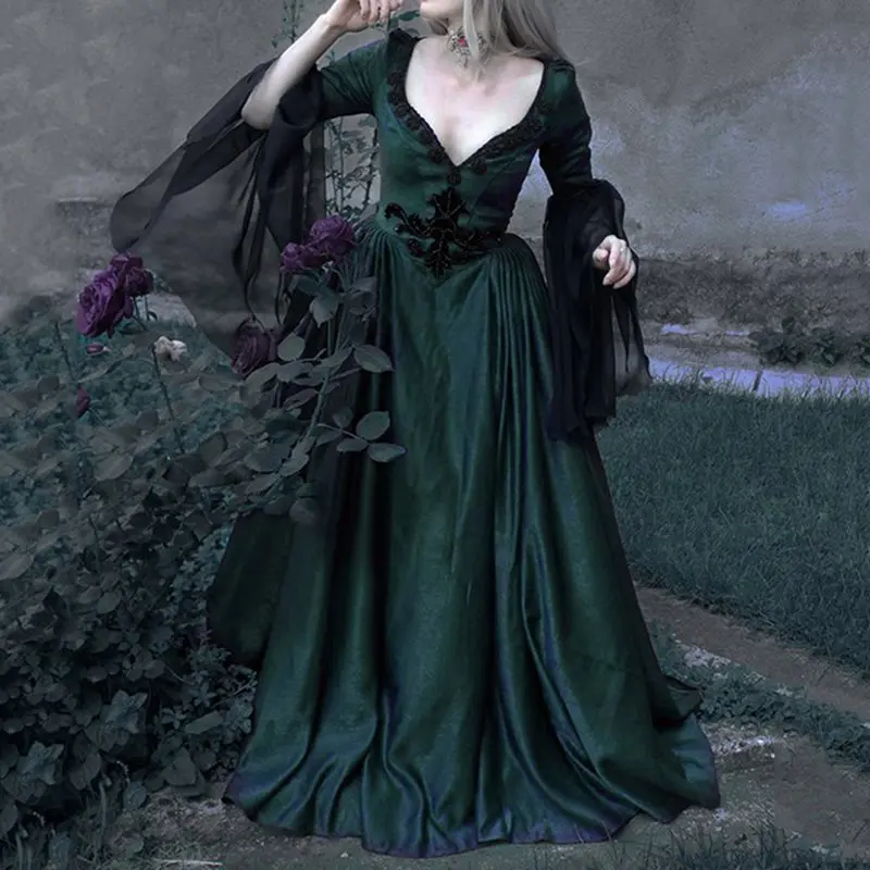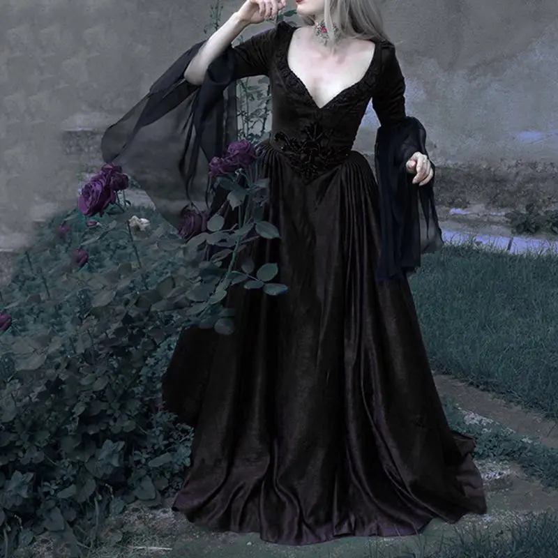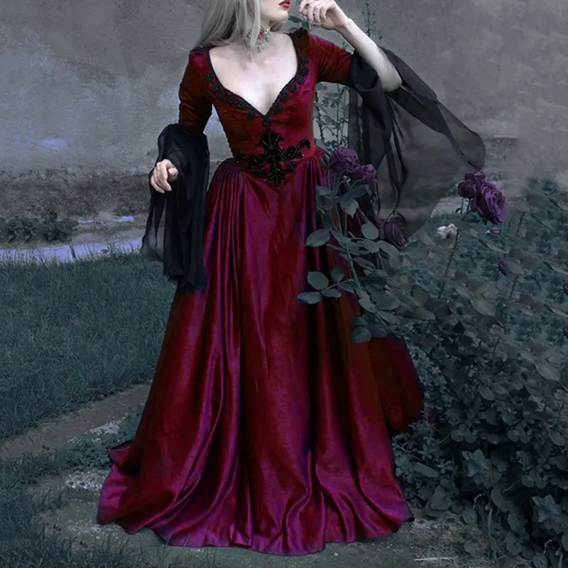 Best Offer Goth Vintage Elegant Long Dress Women Autumn Winter Dark Black Red Mesh Retro Evening Party Dinner Dress Plus Size 5XL Vestidos
