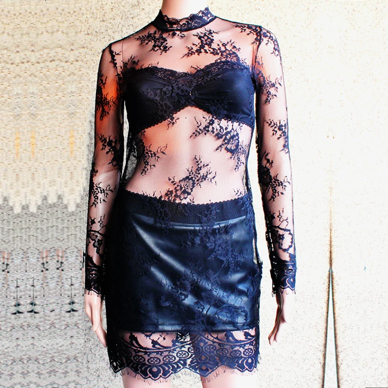 Get this Spring and autumn lace slim all-match slim hip of perspectivity cutout slim hip skirt plus size mm long-sleeve dress with limited time discount by pressing the button below