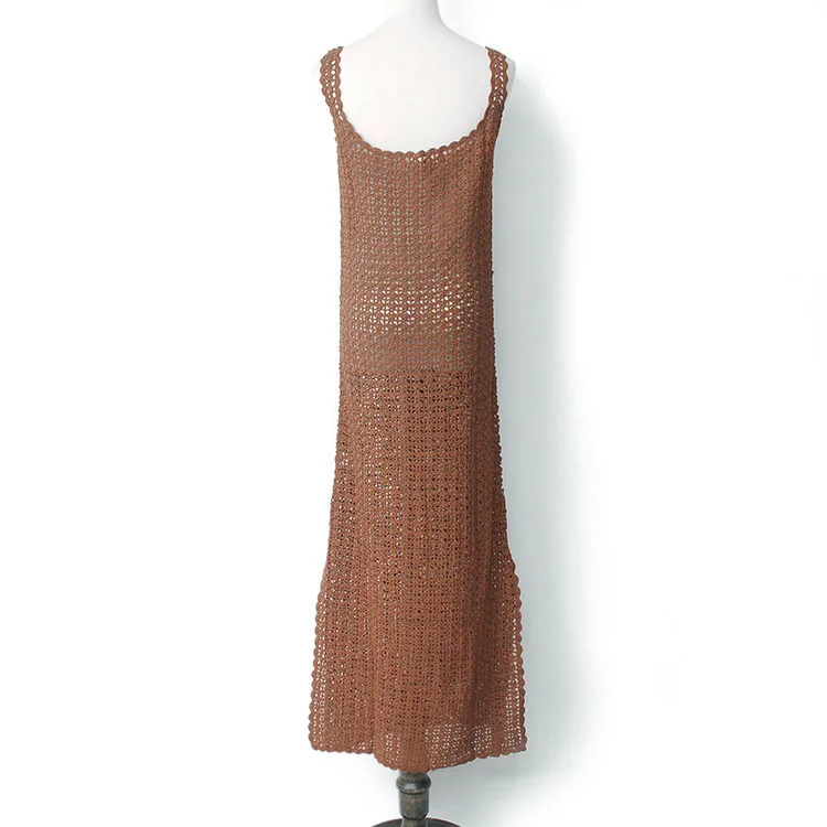 Images of YUNINYOYO Hollow woven sundress with side vent summer women jumper dress 2colours long crochet perspective dress :