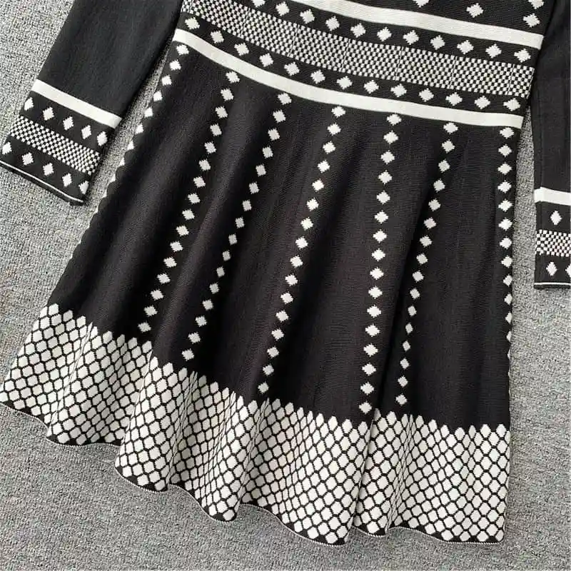Images of 2019 Autumn Sexy Dress Fashion Sweet Long Sleeved Slim High Waist O-neck Bottom Knitted Elegant Comfort Color Matching Vestidos :
