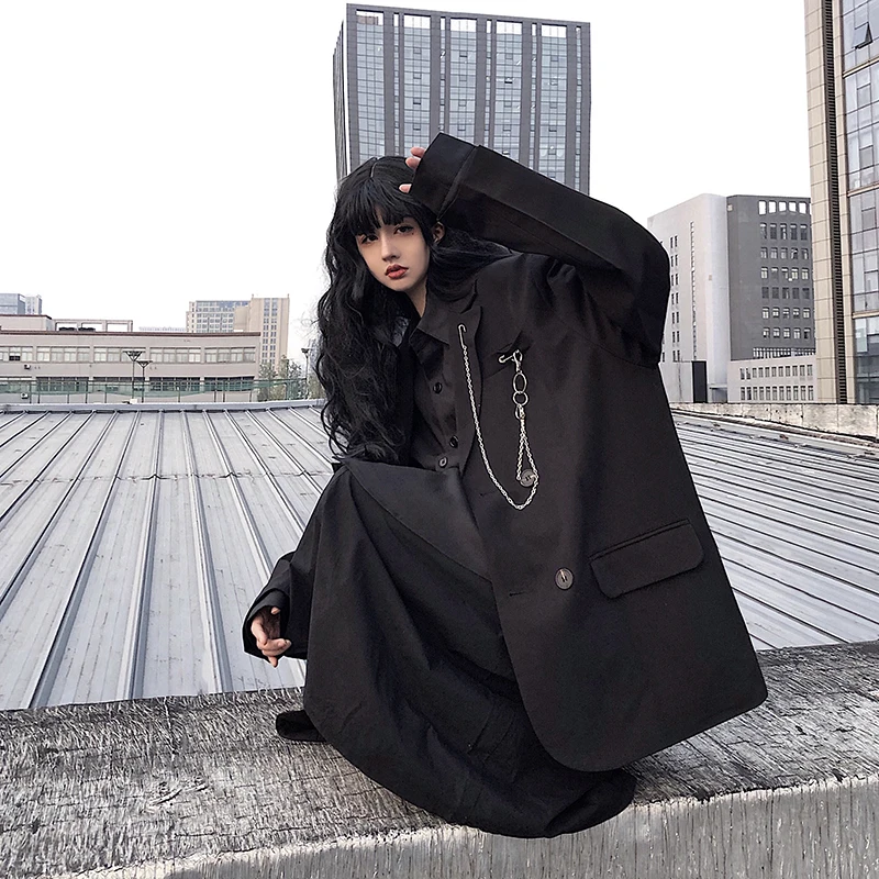 Images of Spring Women's fashion Loose lapel Solid color Double-breasted loose Plus size blazer :