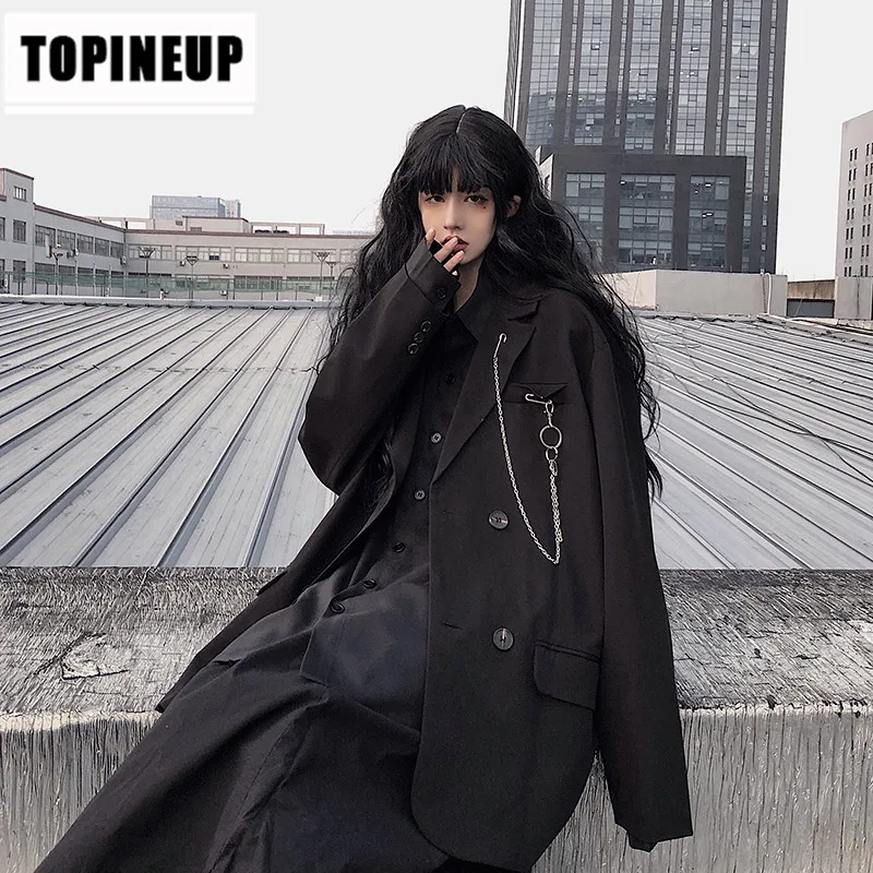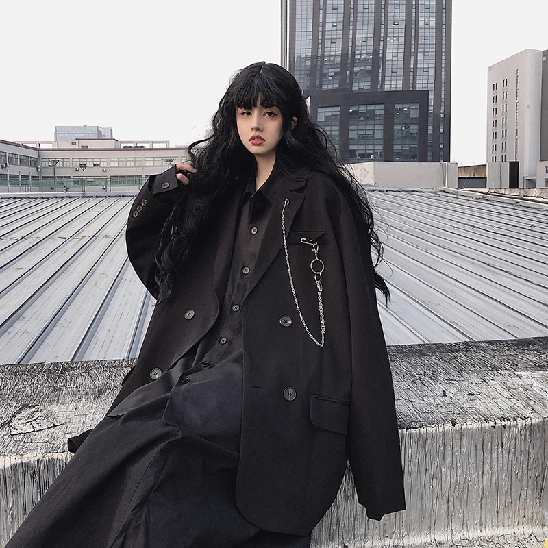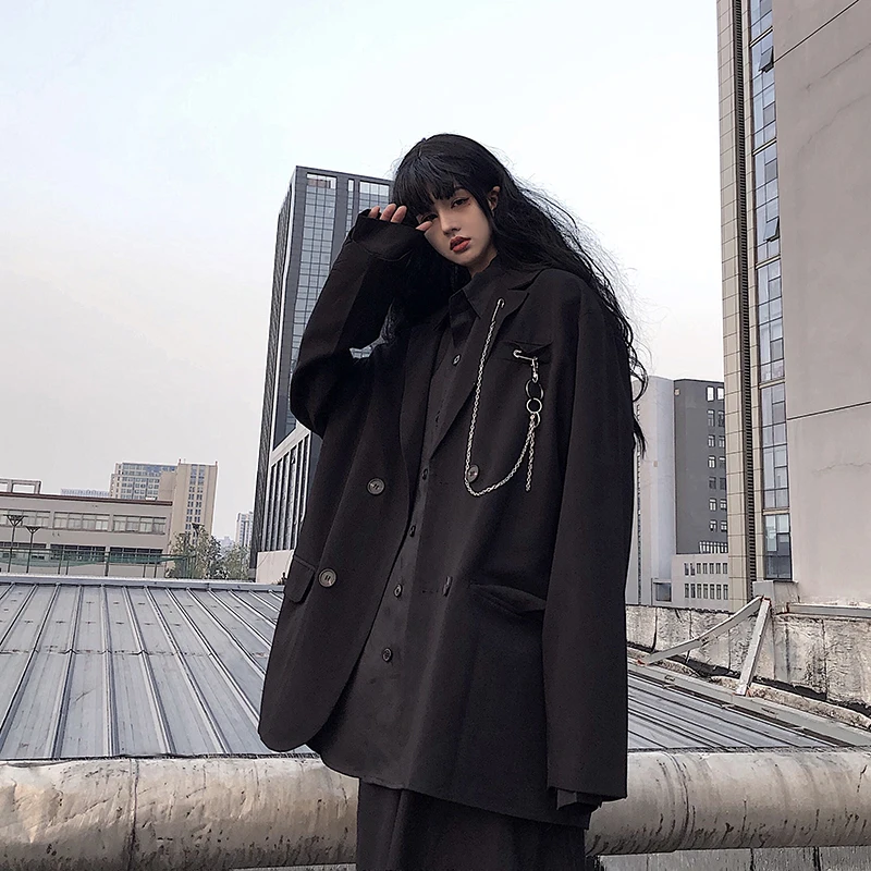 Get this Spring Women's fashion Loose lapel Solid color Double-breasted loose Plus size blazer with limited time discount by pressing the button below