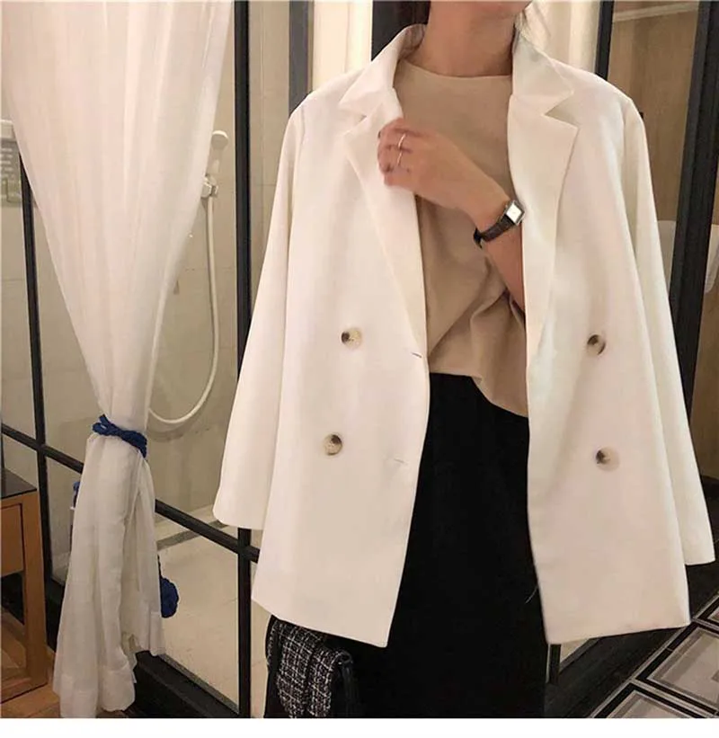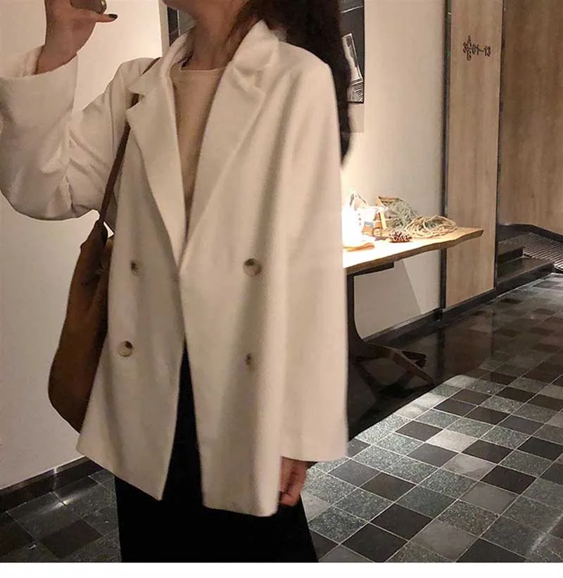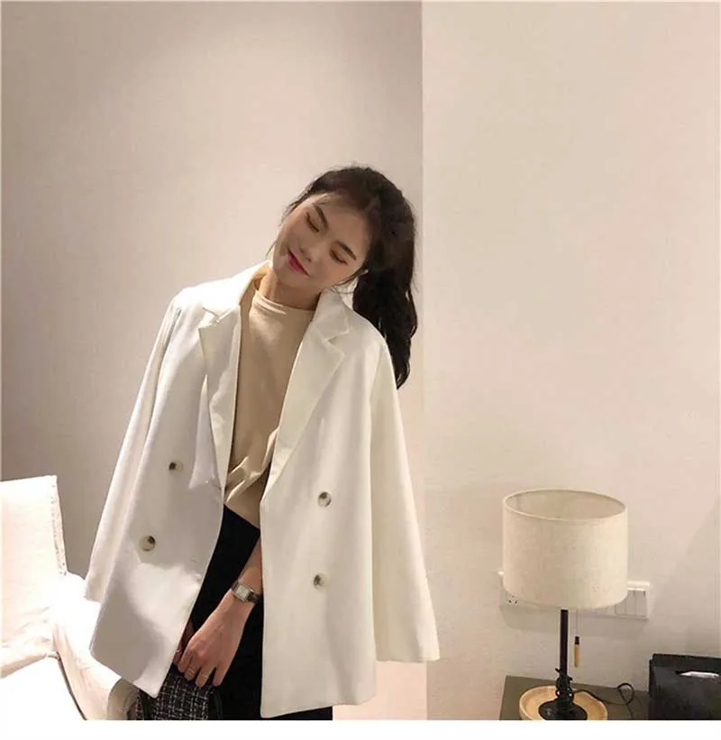 Best Offer Women's Blazers Notched Collar Long Sleeve Office Lady Jackets Coat 2019 Spring Autumn Korean Loose Work Formal White Black Tops