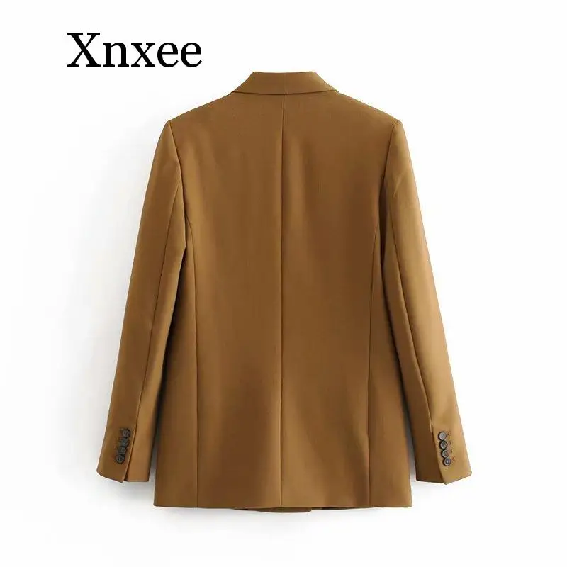 Images of Brown simple english style college Women Elegant Long Sleeve Double Breasted Blazer Jacket Casual Solid Chic Office lady Suit :