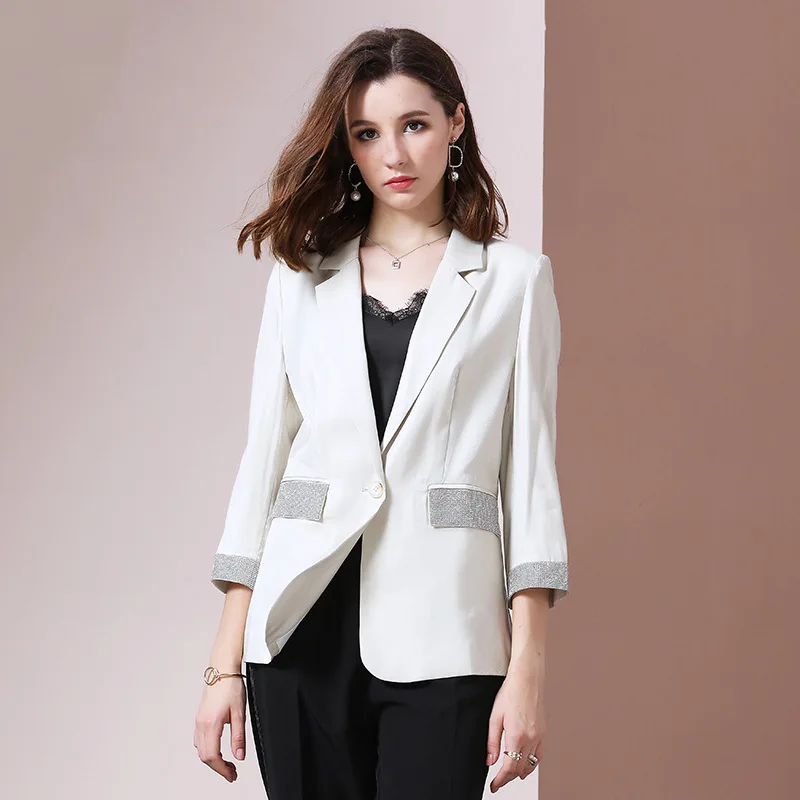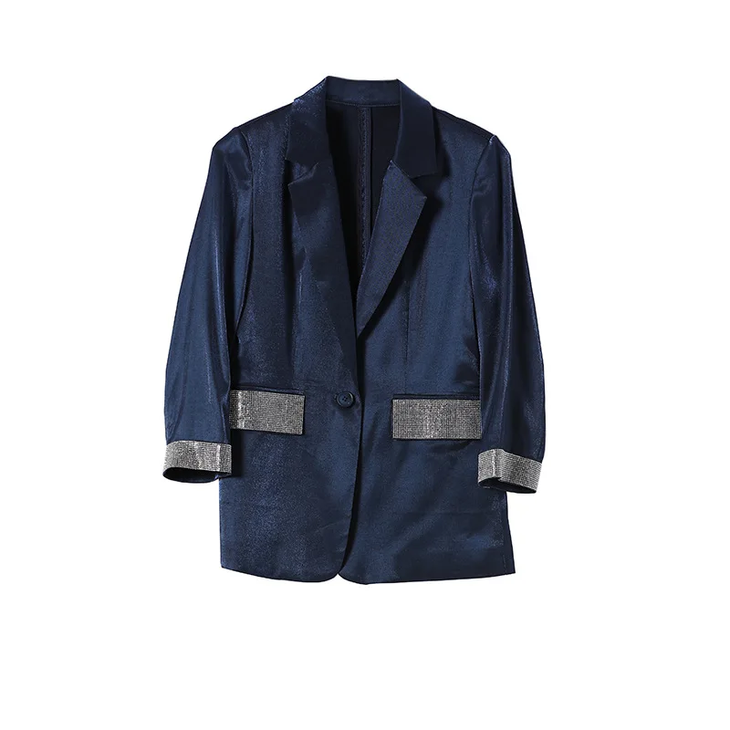 Get this Spring 2020 new high-end women's wear silk vinegar satin hot drill small suit jacket women's fashion suit with limited time discount by pressing the button below