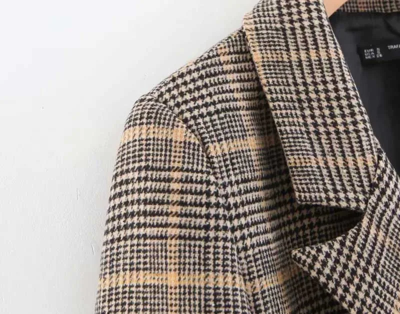 New twill long coat women england style notched houndstooth double breasted pockets long coat winter coat women tops