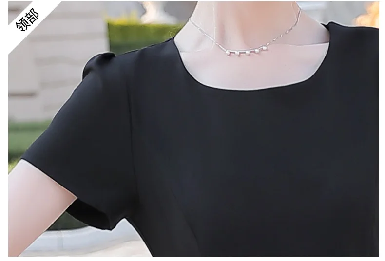 Images of Female Elegant Formal Office Work Wear Summer Fashion Women Dresses Short Sleeve Office Ladies Black Dress with Belt OL Style :