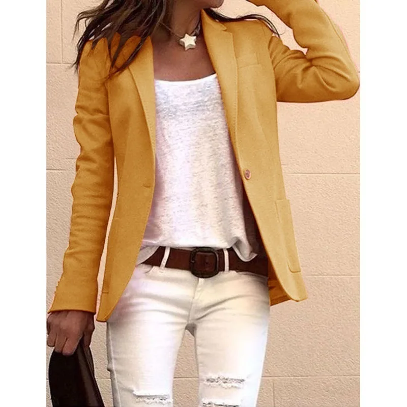 Buy Long Sleeve Womens Coat Single Breasted Solid Female Jacket Plus Size Casual Notched Blazer for Women Tweed Kurtka Damska 2020