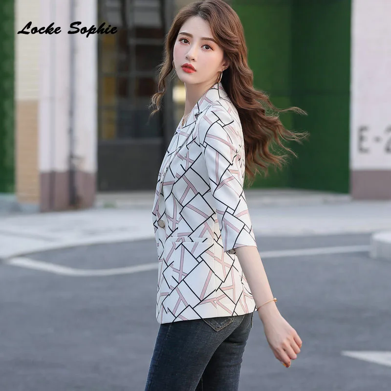 Buy Womens plus size Blazers coats 2020 Spring Cotton stripe Middle sleeve Slim fit Suits jackets ladies Skinny office Blazers Suits