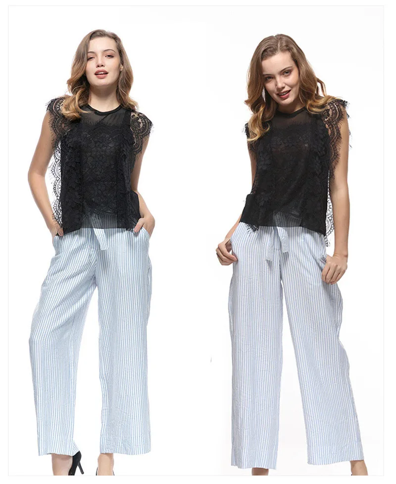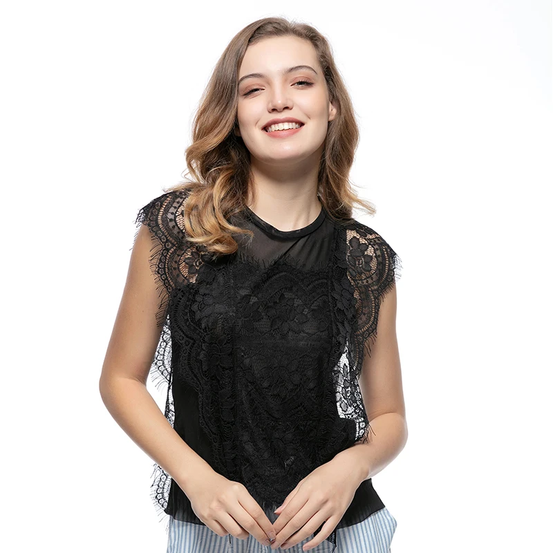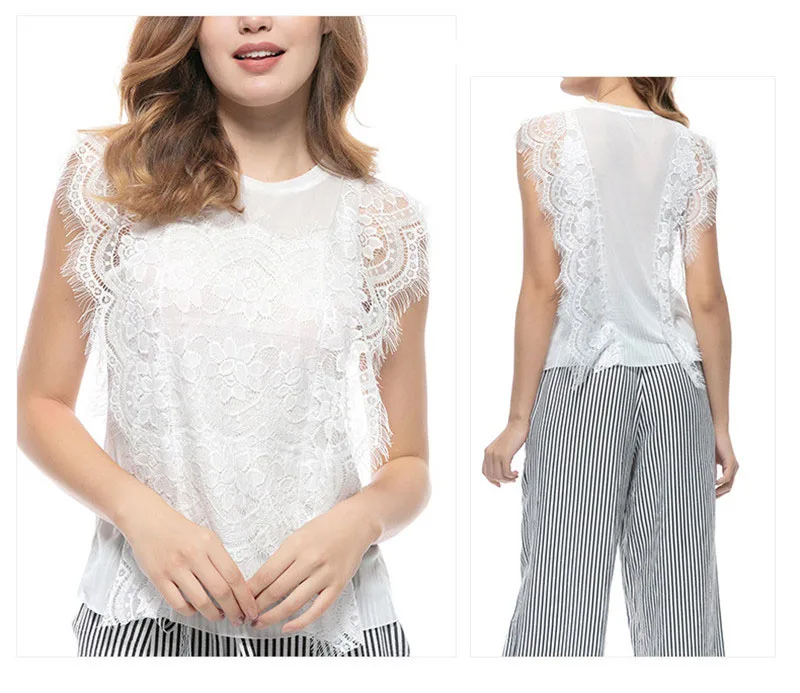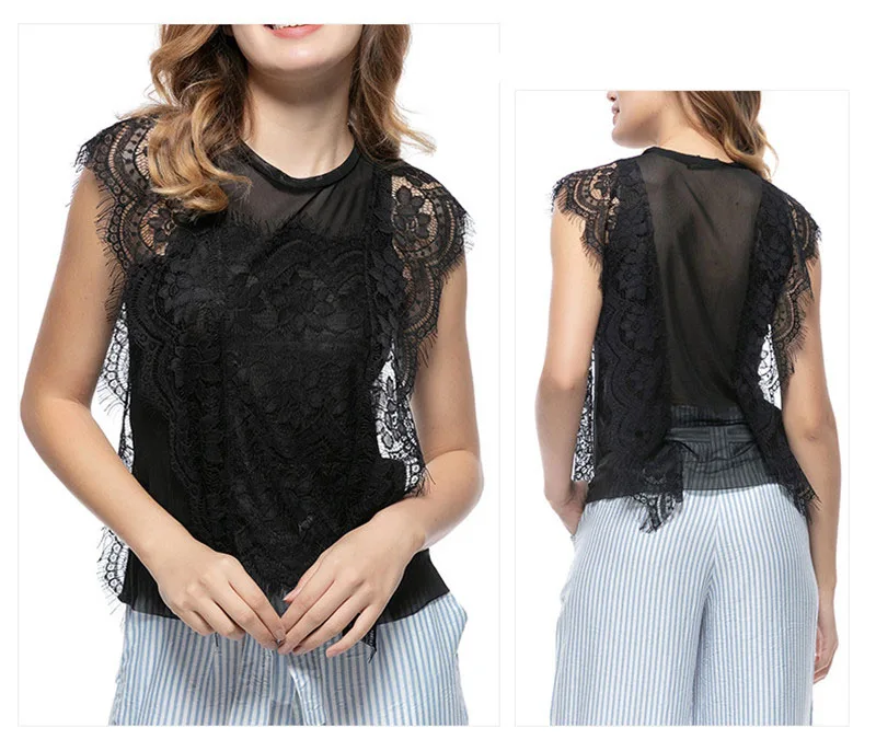 Images of DMLFZMY Large Size Sexy Lace Vest Womens Fashion Summer Mesh Lace Sleeveless Round Neck Casual Loose Solid Color Tops :