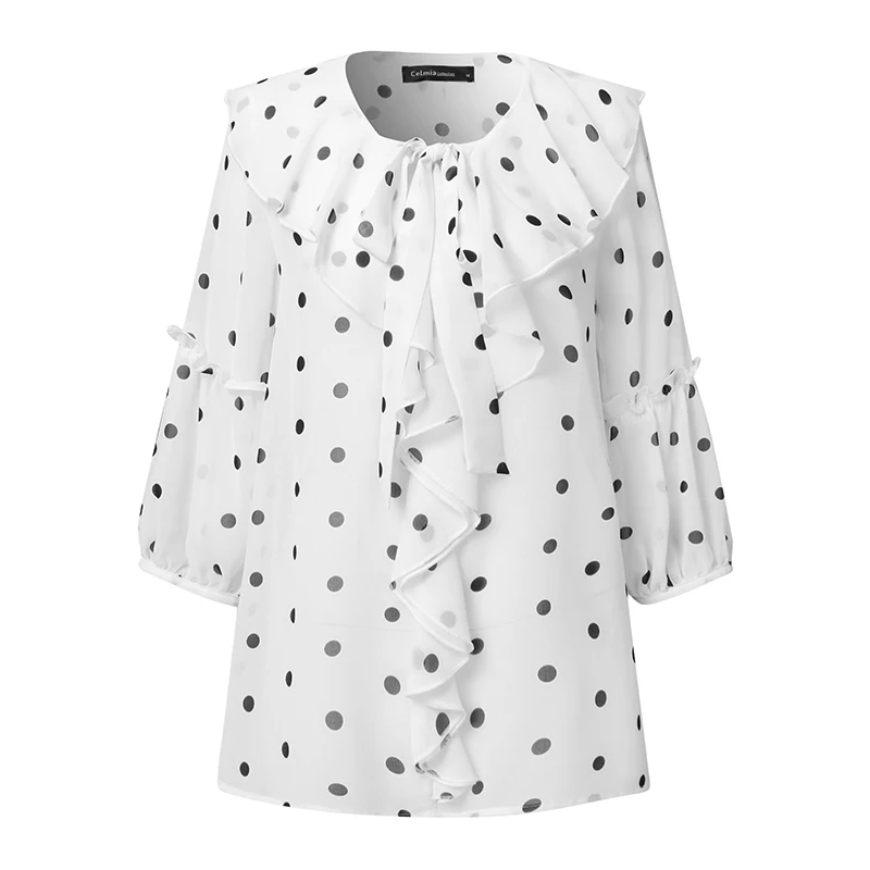 Sale Celmia Stylish Tops 2020 Women Chiffon Blouse Sexy Bow Tie Polka Dot Printed Summer Ruffled Shirts Korean Sheer Female Blusas