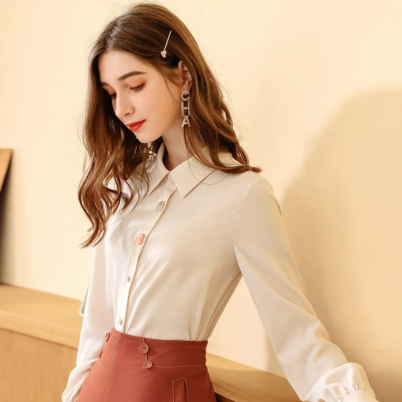 Images of Hot sale 2019 new Autumn Winter womens tops and blouses Office Lady Plus cashmere Lightweight niche Full sleeve bottoming shirt :