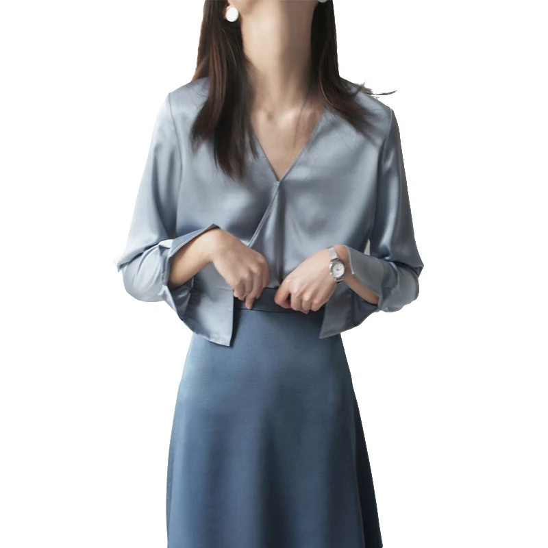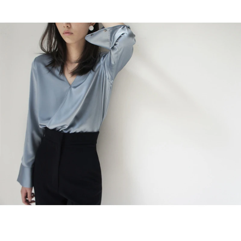 Images of GOPLUS Spring Women's Blouse Shirt Vintage Office Lady Solid V-Neck Long Sleeve Blusas Womens Tops and Blouses Ropa Mujer :
