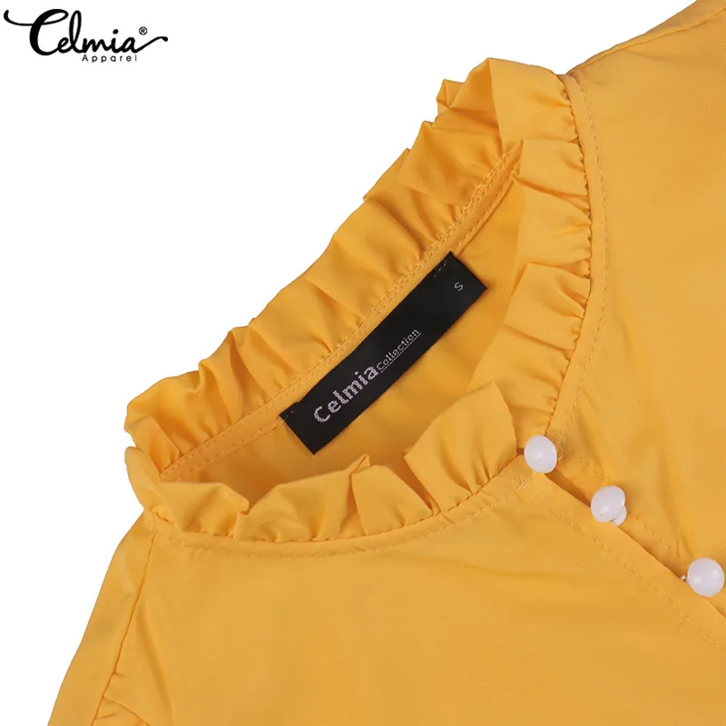 Images of Top Fashion Celmia Women Ruffled Blouses 2019 Long Sleeve Casual Buttons Solid Party Shirt Plus Size Elegant OL Blusas Femininas :