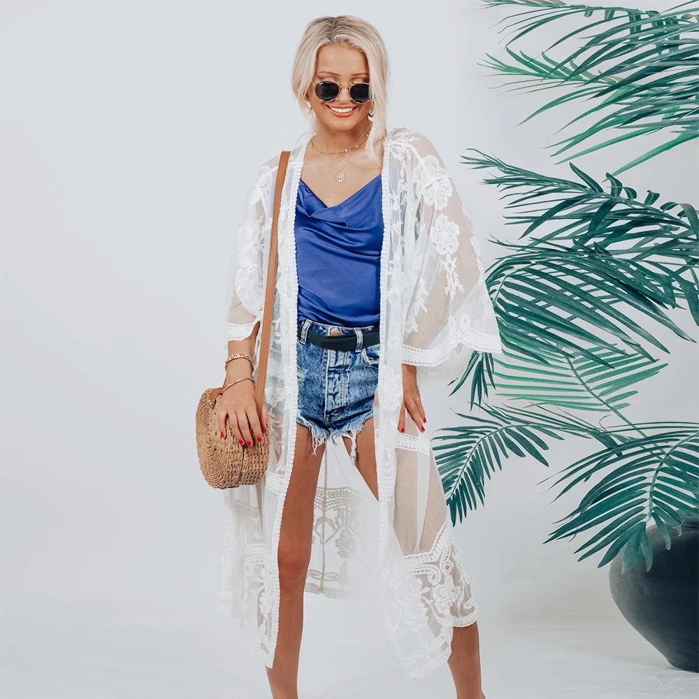 New 2020 summer new women's lace cape coat loose tie long shirt