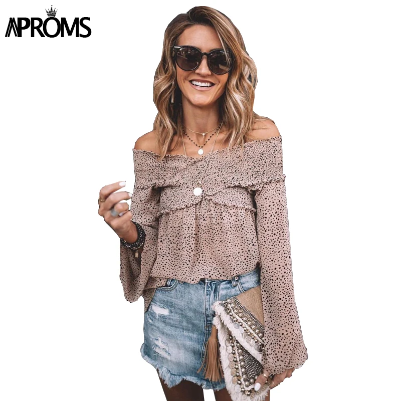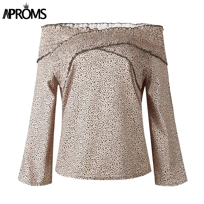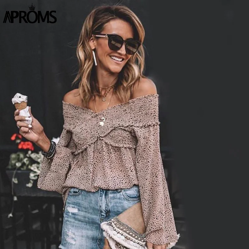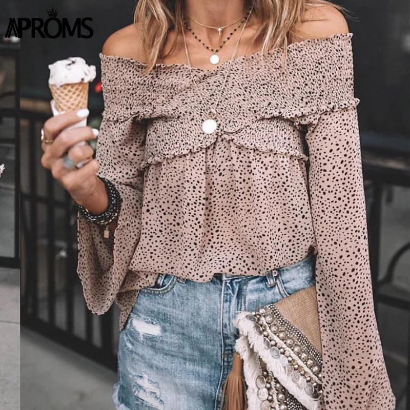 Buy Aproms Vintage Polka Dot Print Off Shoulder Shirt Women Spring Summer Long Sleeve Fashion Tops Ladies Streetwear Blusas Mujer