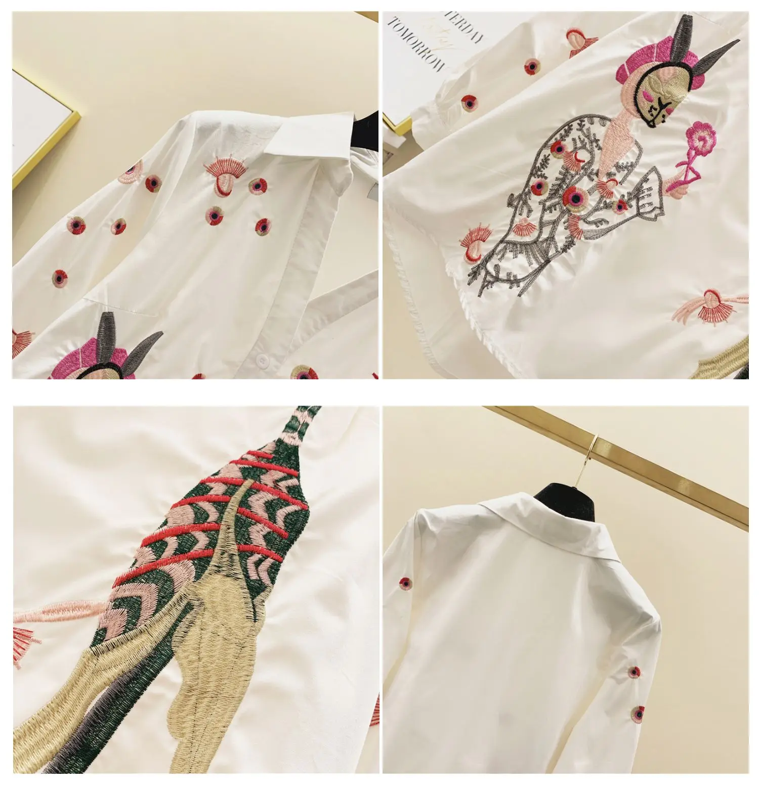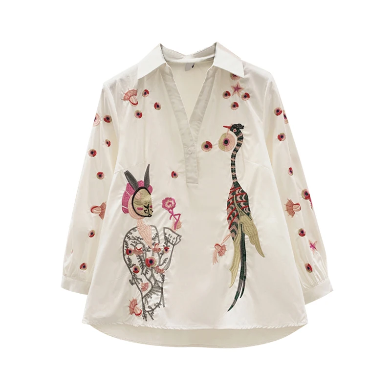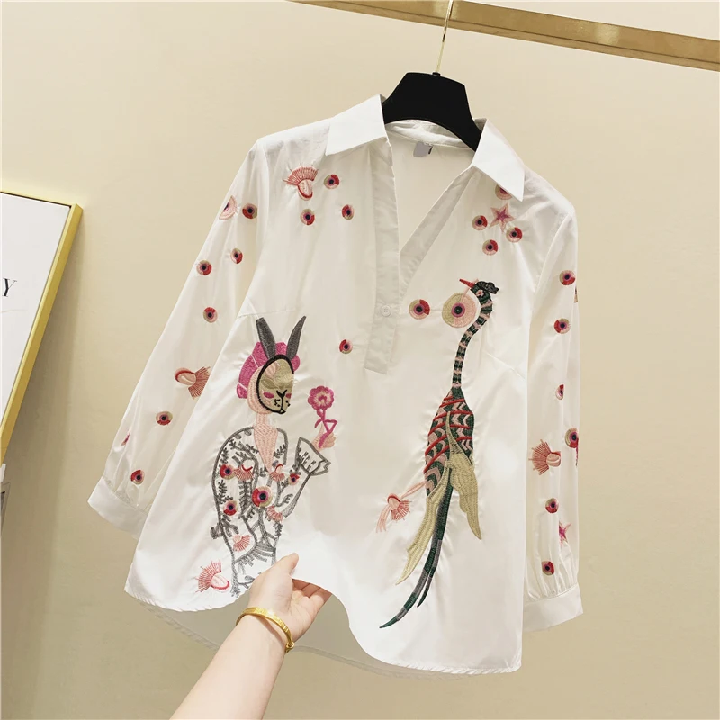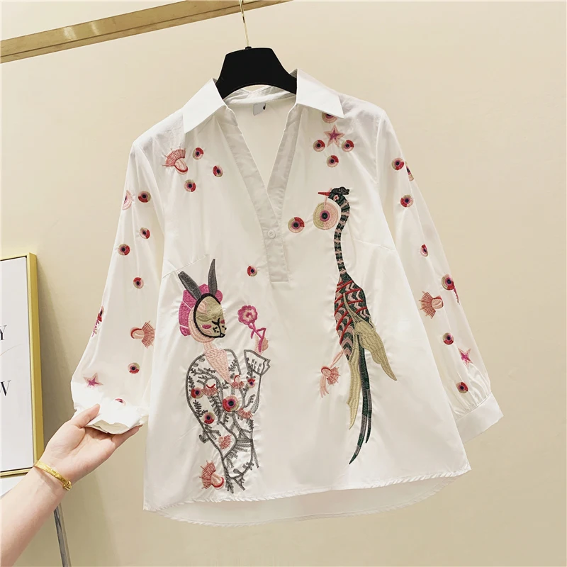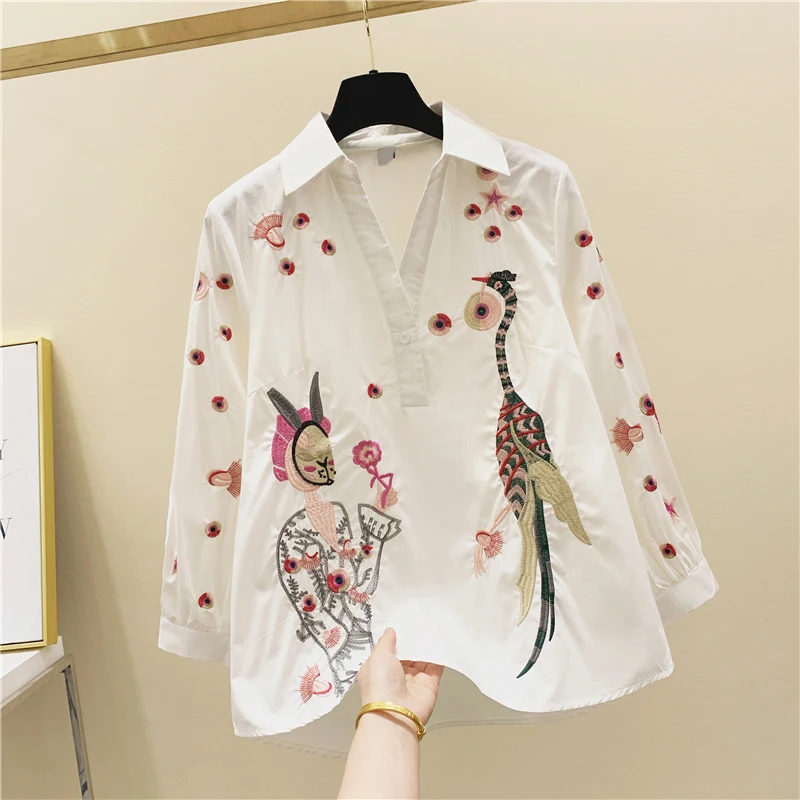 Sale Embroidered V-neck High Quality Shirt Women's 2020 Spring New Long-Sleeve Embroidered Shirt Doll Shirt Women's Blouse Tops