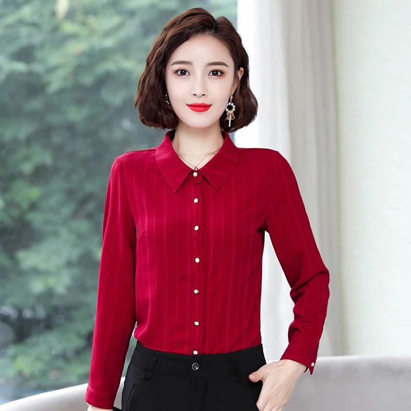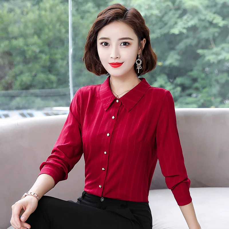 New Fashion Women Shirts Woman Chiffon Blouses Shirt Plus Size Elegant Women Stripe Blouse Shirt Womens Tops and Blouses OL Shirts