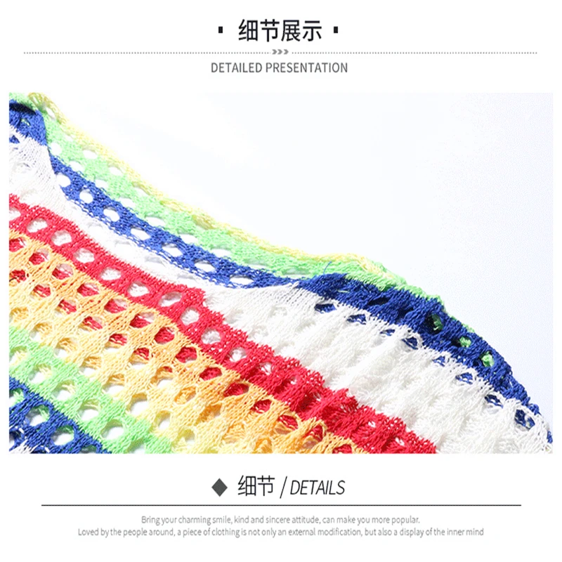Buy Slash Neck Long Sleeve Spring Tops and Blouse Plus Size Rainbow Striped Knit Hollow Clothes Sweater Women's Loose Pullover Tops