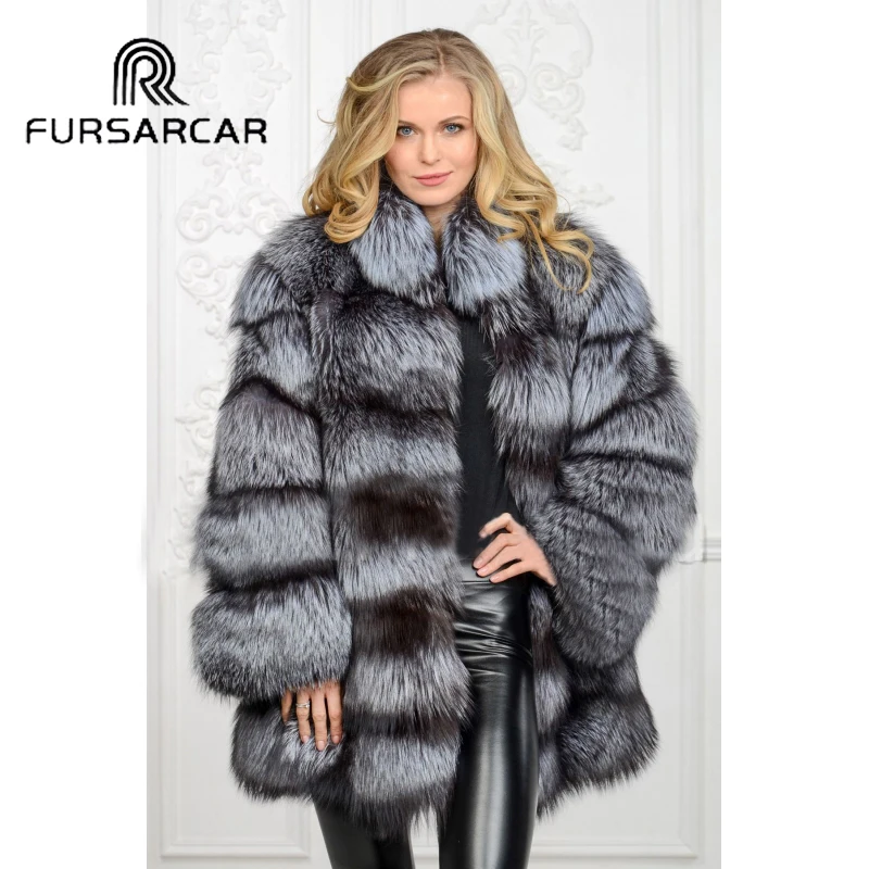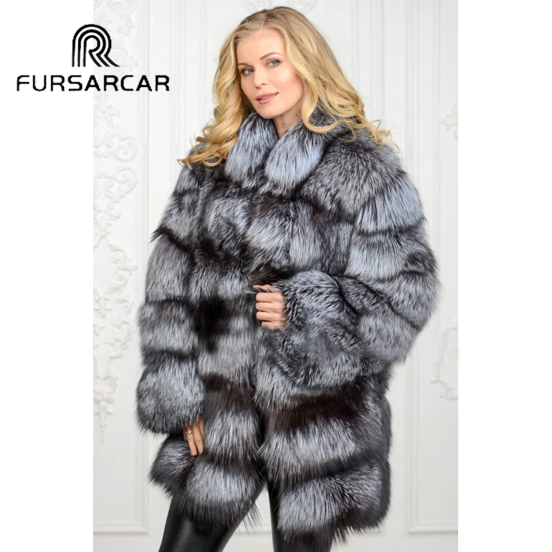 Buy FURSARCAR Winter New Real Silver Fox Fur Coats For Women Fashion Thick Warm Female Silver Fox Fur Jacket With Fur Collar