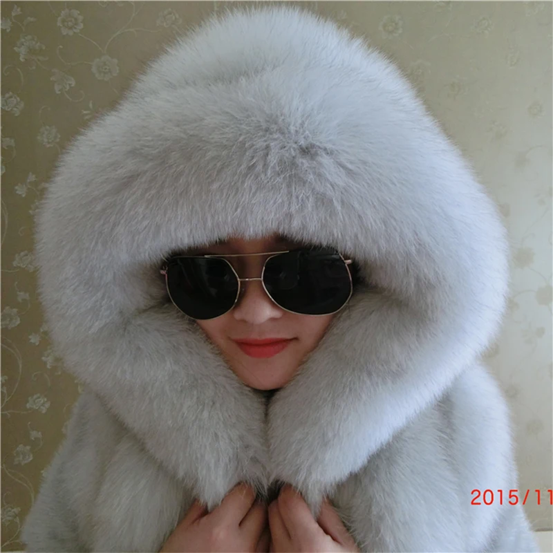 Images of Real Fox Fur Vest With Hooded Medium Long Fur Coats Female Jacket Overcoat Genuine Fur Fox Coat Women BF-C0448 :