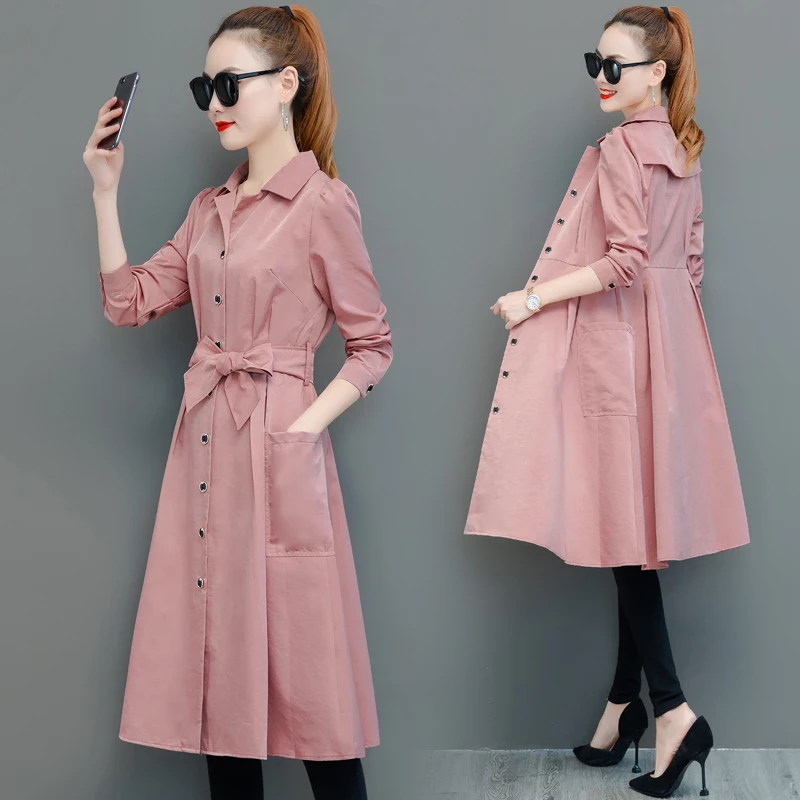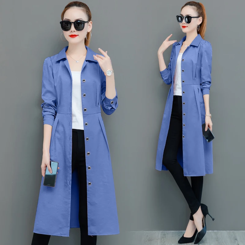 Images of 4 Colors Autumn Spring Slim Long Women Trench Coat Casual Office Elegant Long Coat Korean Style Female Overcoat New Arrivals :
