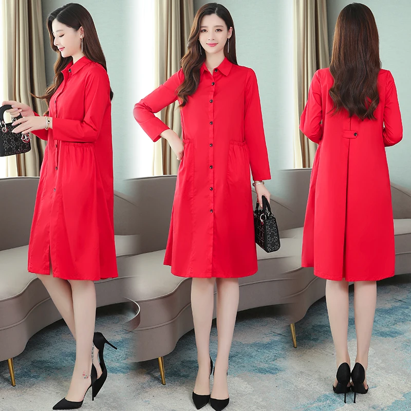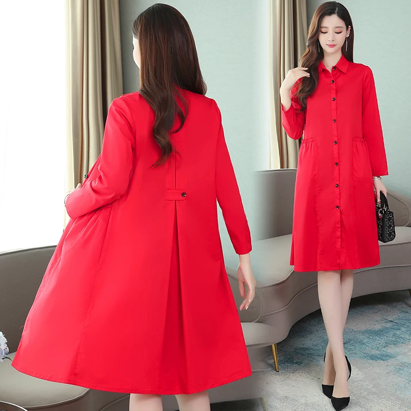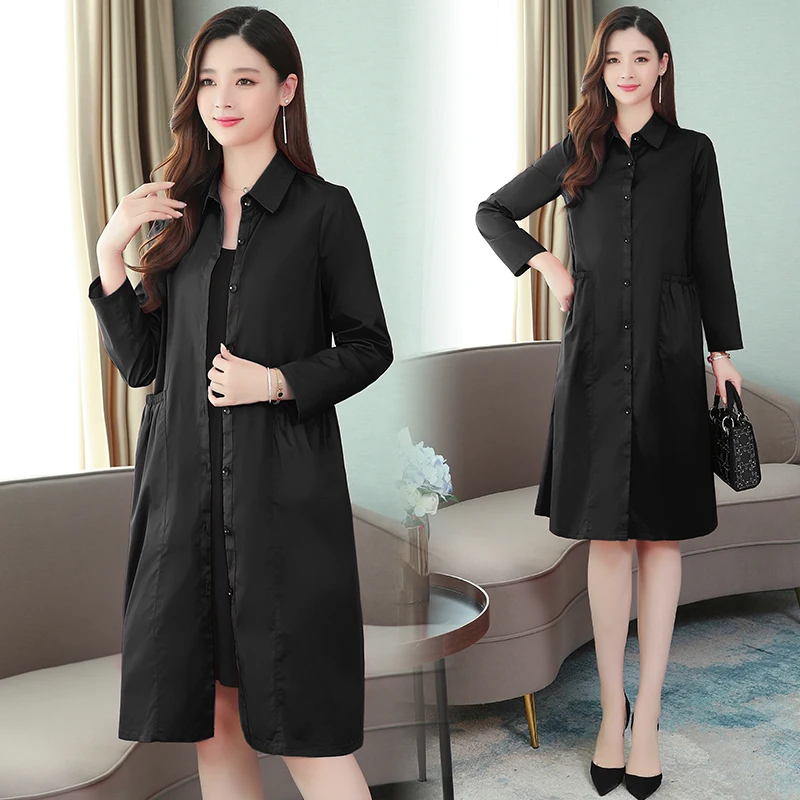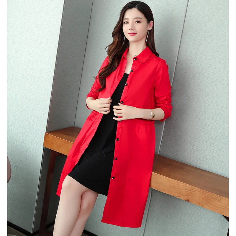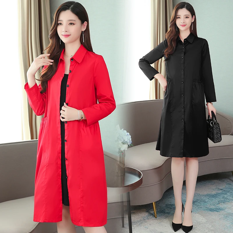Best Offer Turn-down Collar Trench Coat for Women Autnmn Spring Mid-long Cool Elegant Overcoat Korean Style Duster Coat 2 Colors Black Red