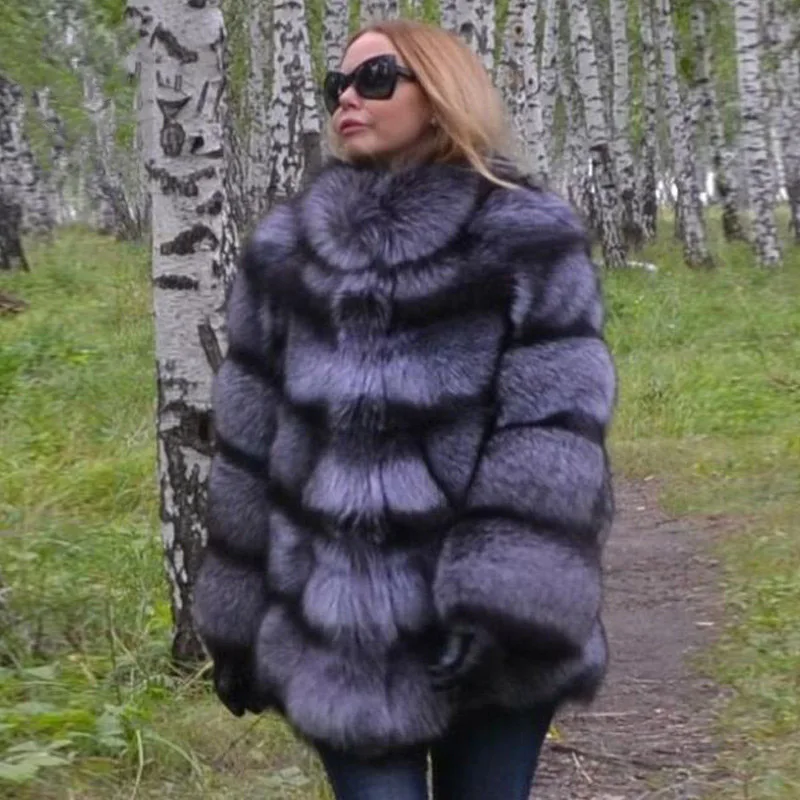 Images of BFFUR Top Grade Real Fox Fur Coat Thick Warm Fur Whole Skin Robe Femme Hiver 2018 Plus Size Winter Women's Park With Natural Fur :