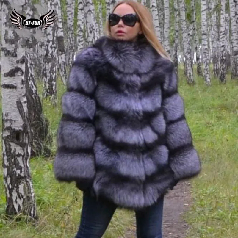 New BFFUR Top Grade Real Fox Fur Coat Thick Warm Fur Whole Skin Robe Femme Hiver 2018 Plus Size Winter Women's Park With Natural Fur