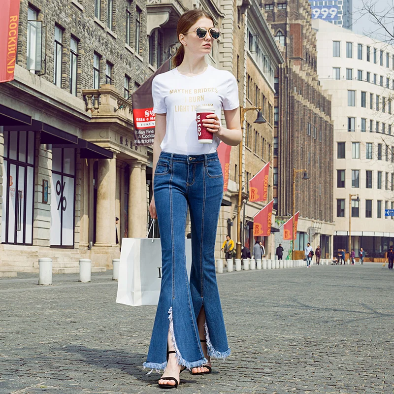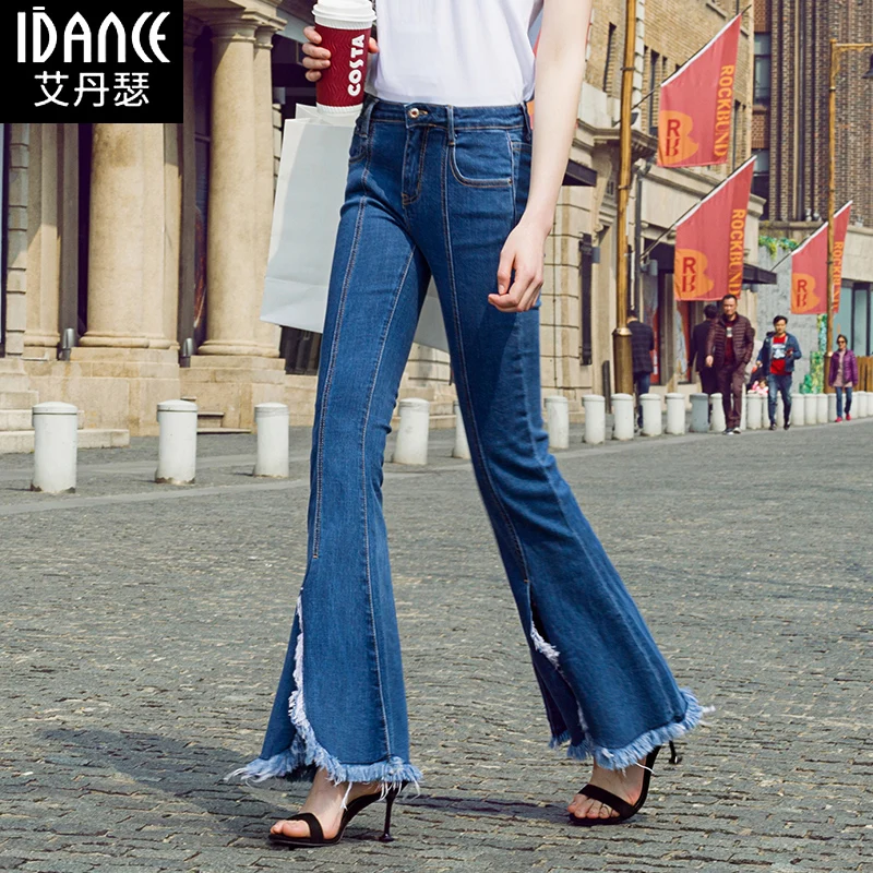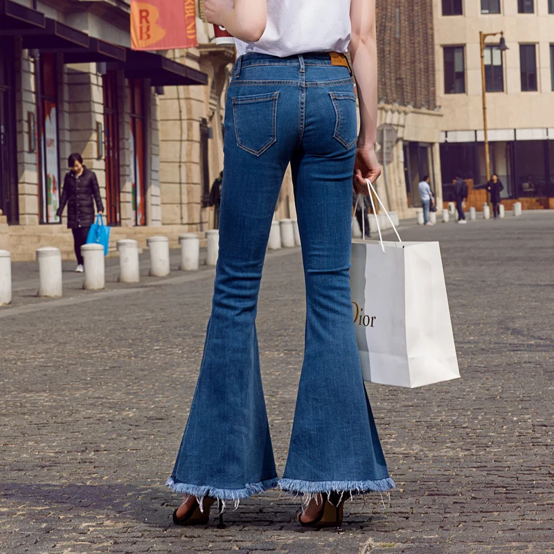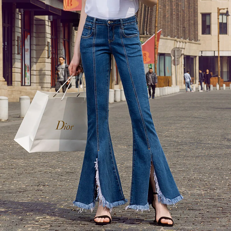 Promo Free Shipping 2019 New Fashion Long Jeans Pants For Women Boot Cut Trousers Plus Size 25-30 Tassels Denim Spring Stretch Jeans