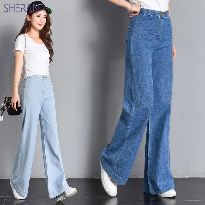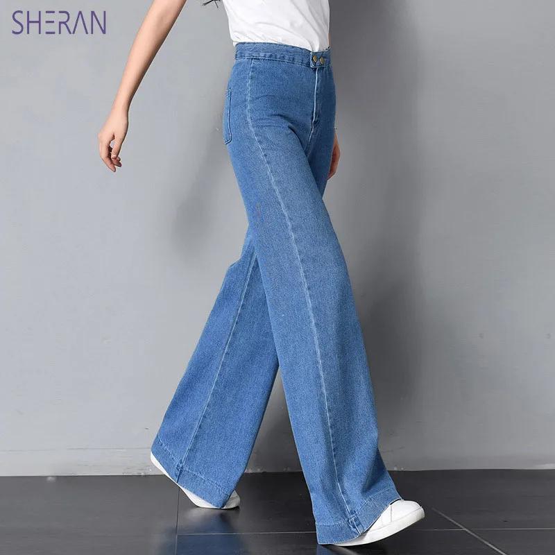 Best Offer SHERAN High Waist Loose Wide Leg Jeans Pants For Women 2018 New Denim Jeans Woman Trousers Blue Plus Size Female Casual Pants