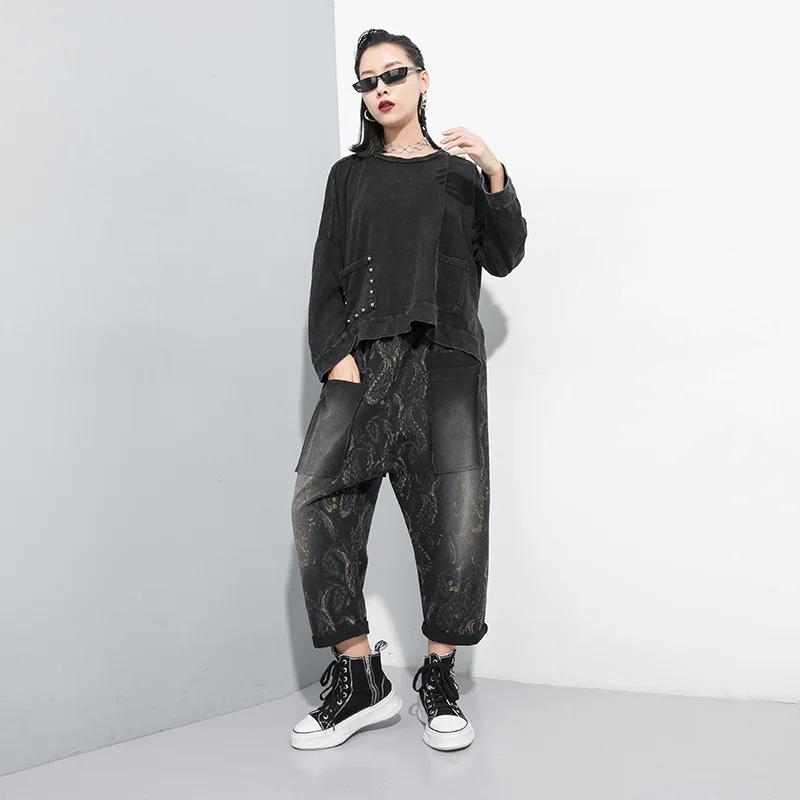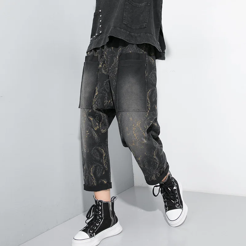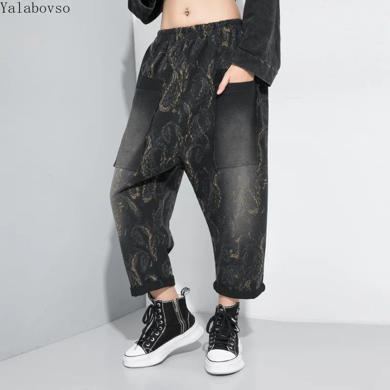 Images of 2020 Fashion Trousers Women Pants Women Plus Size Pants Women Elastic Waist Vintage Ankle-Length Pants Vintage Trousers A81Z40 :