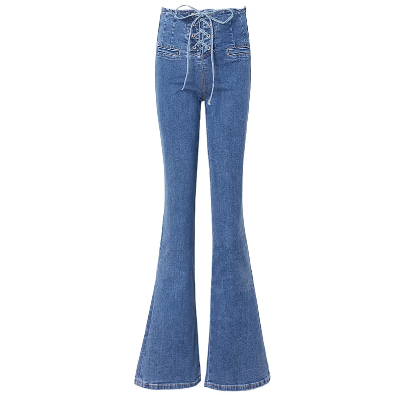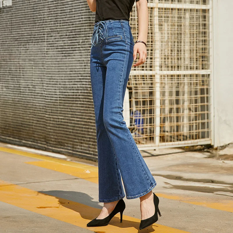 New Free Shipping 2019 New Fashion Bandage High Waist Long Jeans Pants Women Boot Cut Trousers Plus Size 25-30 Denim Stretch Jeans