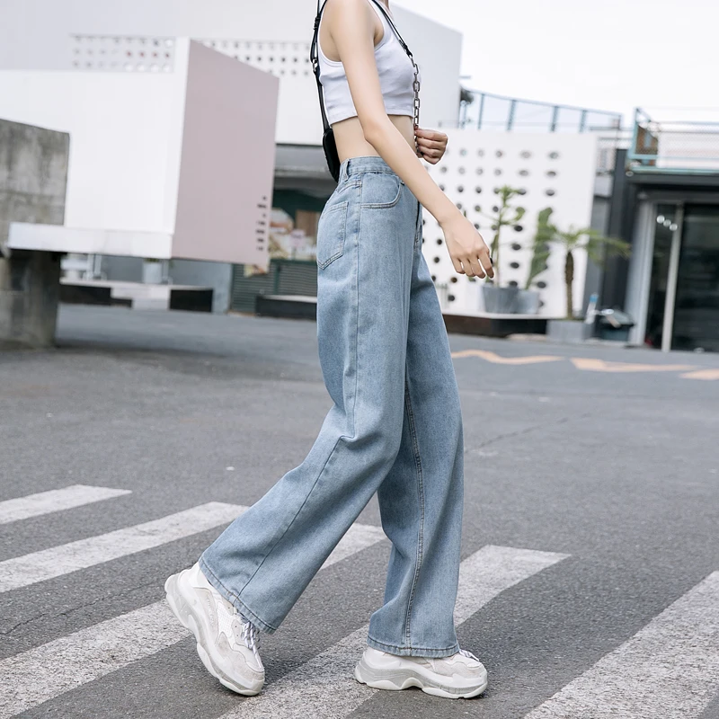 Images of New ladies jeans Women's high waist wide leg pants Mom OL Straight Wide Leg Womens Jeans Denim Flare pant Plus size Denim Pants :