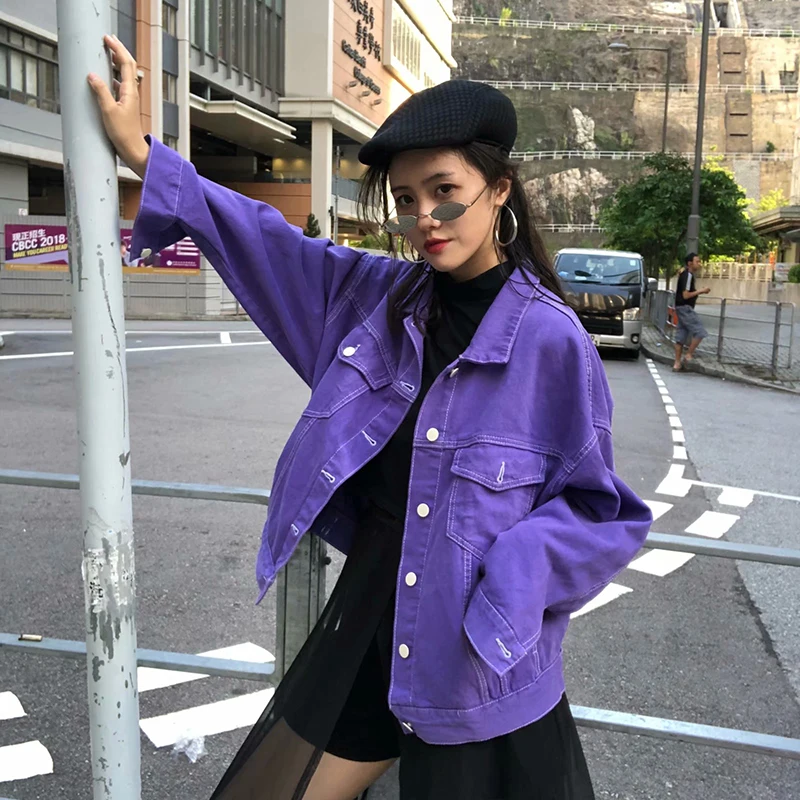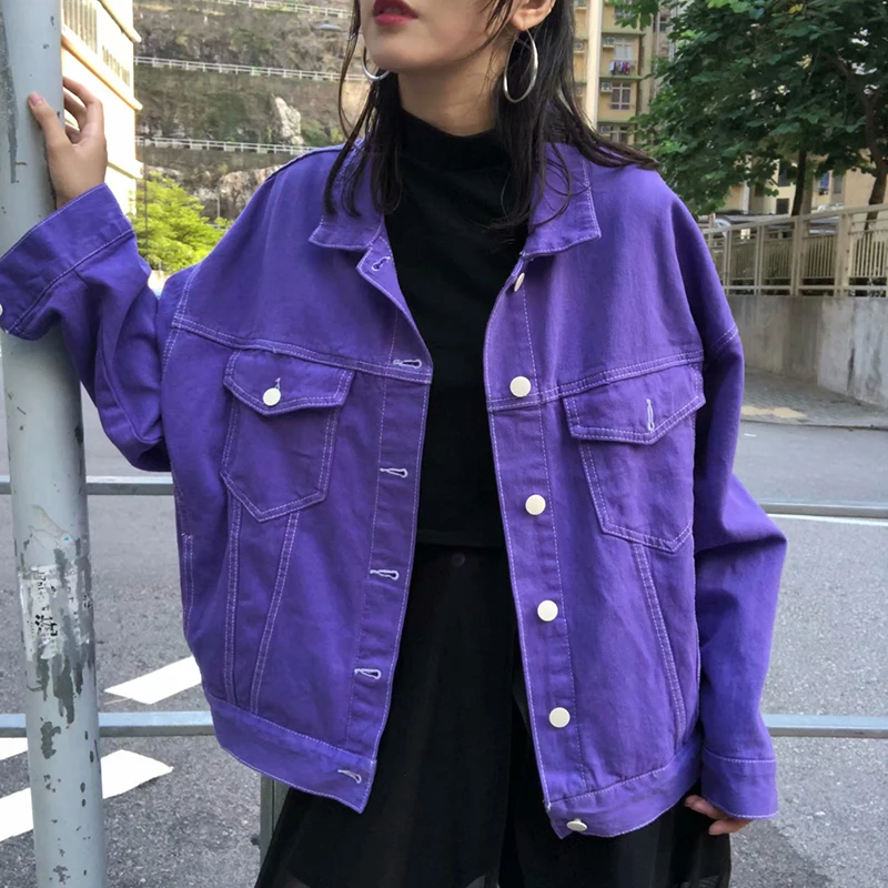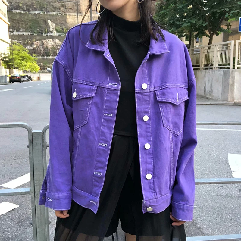 New Women Clothes Lady Oversized Jacket Purple Jeans Jacket Coat Women Fashion Outfite Lady Long Demin Jacket Coat Streetwear