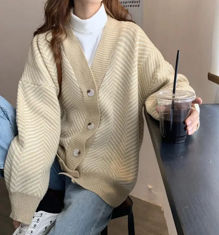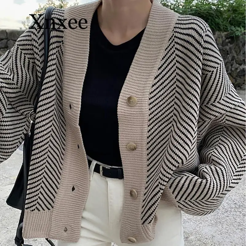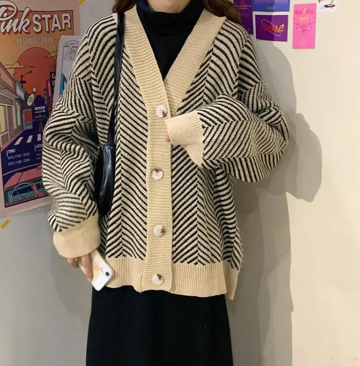 Sale Zebra warm cozy Knitted Striped Cardigan Sweater Women Patchwork Top Autumn Winter 2020 Long Sleeve Casual Outwears V Neck
