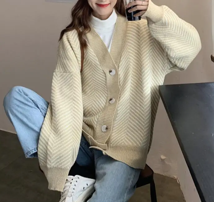 Get this Zebra warm cozy Knitted Striped Cardigan Sweater Women Patchwork Top Autumn Winter 2020 Long Sleeve Casual Outwears V Neck with limited time discount by pressing the button below