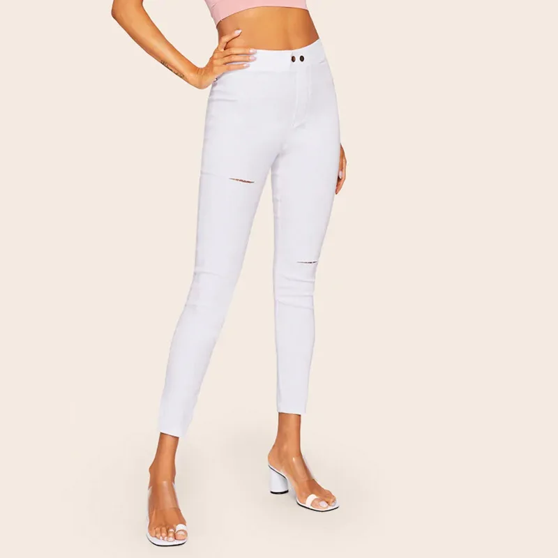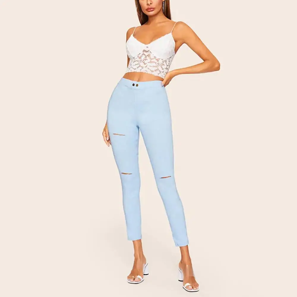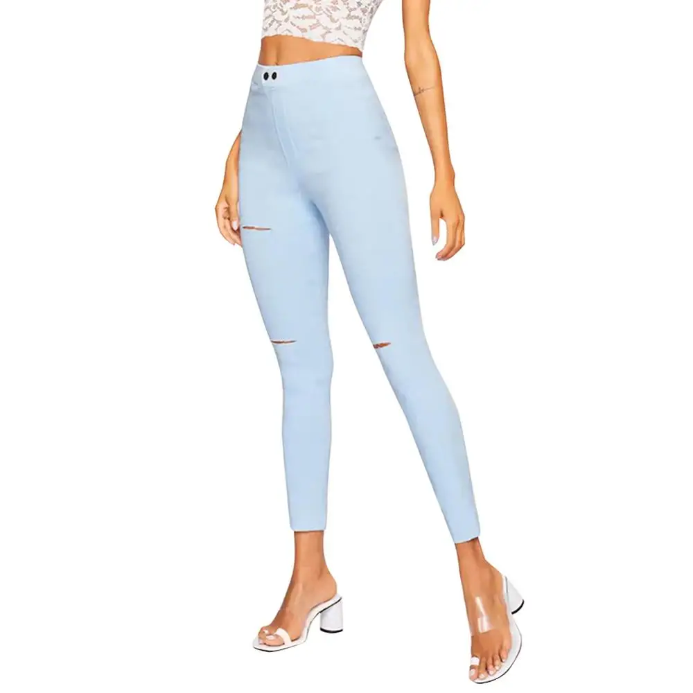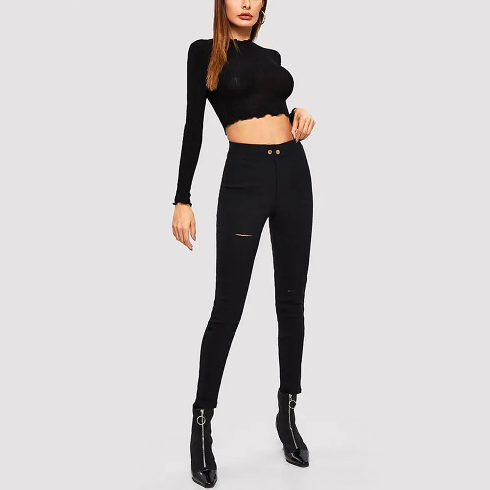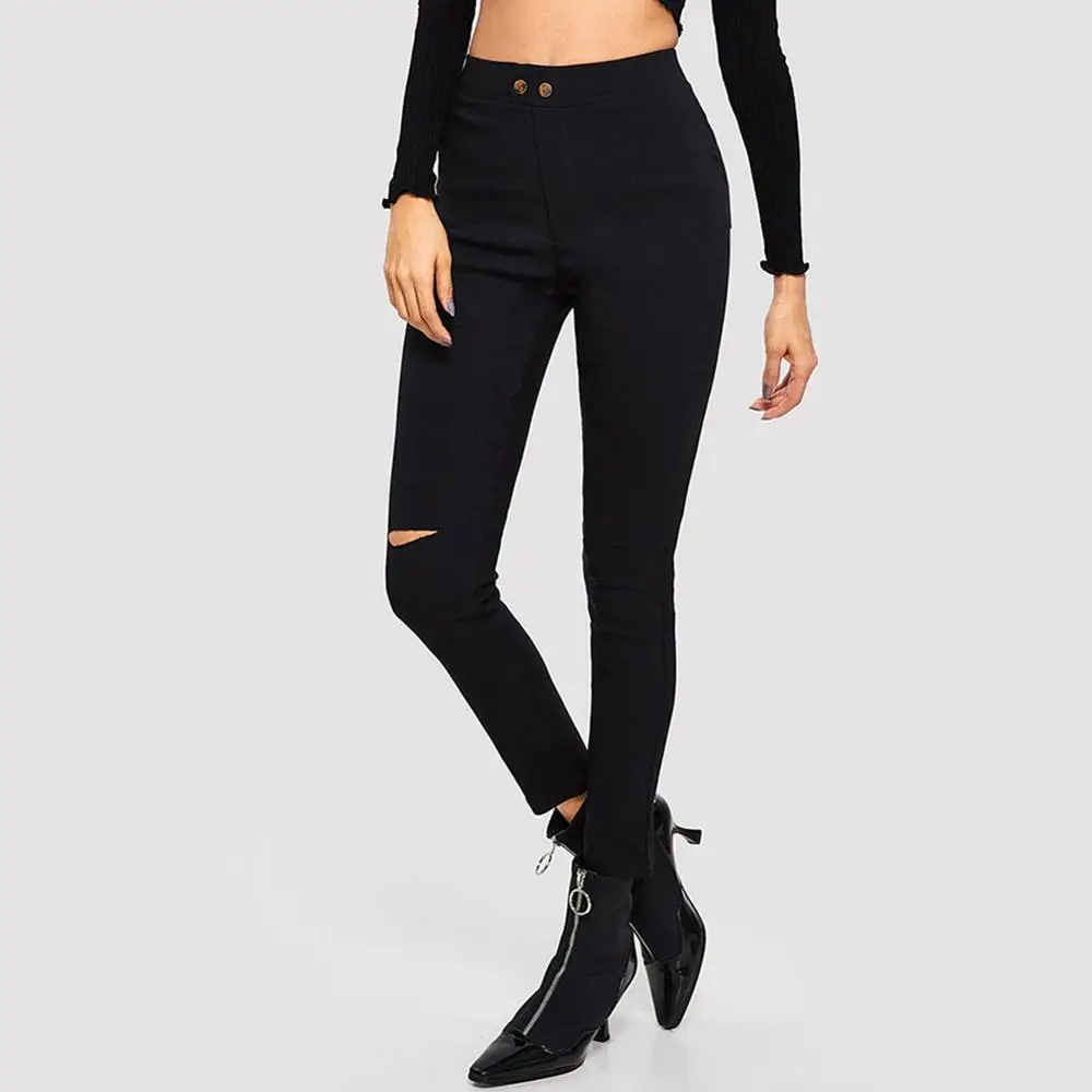 Images of DANALA Ripped Jeans Women Jeggings Cool Denim High Waist Skinny Ripped Pants Pencil Trousers Black Summer Hole Pencil Stretch :