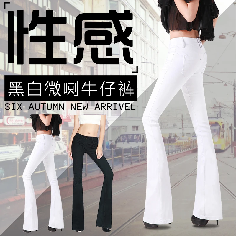 Images of Free Shipping 2017 New Fashion Long Jeans Pants For Women Flare Trousers Plus Size 24-31 Size Denim Summer White And Black Jeans :