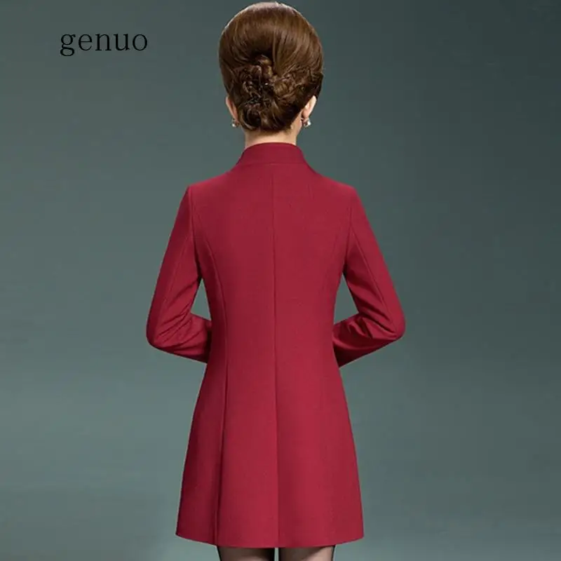 Images of Genuo New L-5XL Plus Size Jacket Women Fashion Spring Autumn Top Coat Standing Collar Long Windbreaker Outerwear Slim Ladie Coat :