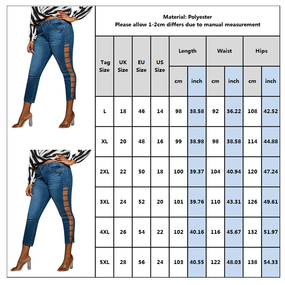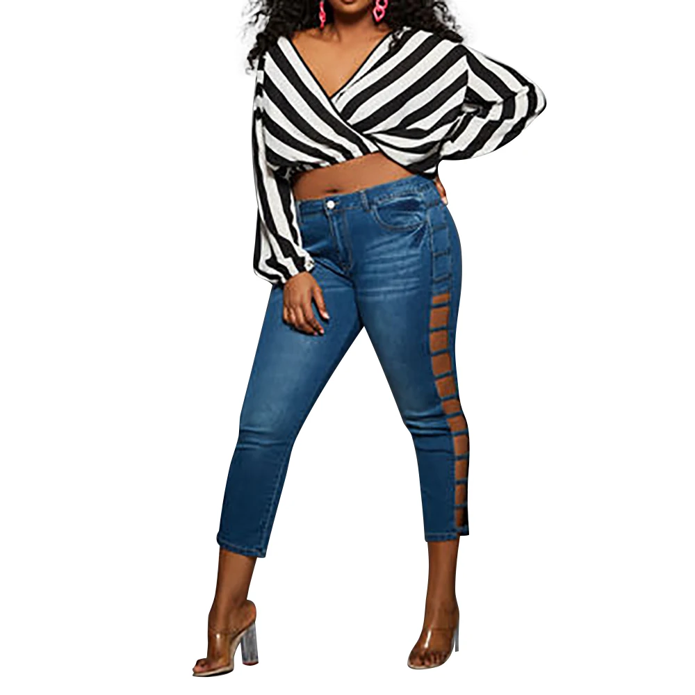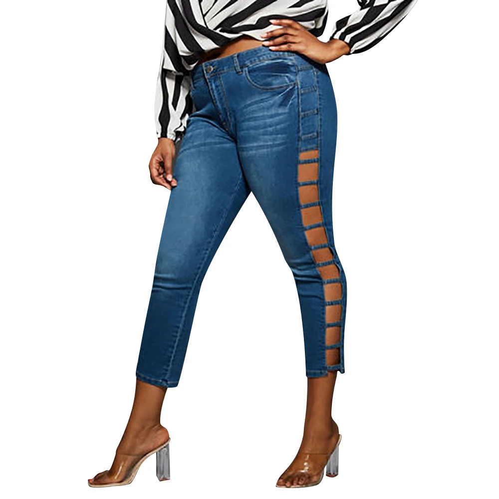 Images of 5XL Plus Size Jeans Summer Hollow Out Women Jeans Casual Skinny Jeans Woman Streetwear Pocket Denim Pants jeansy damskie D30 :