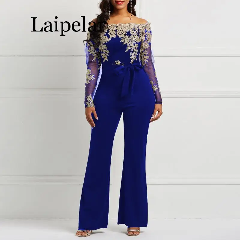 Get this Laipelar Women Jumpsuit Luxury Lace Patchwork Mesh Transparent Off Shoulder Autumn Winter Long Sleeve Wide Legs Sexy Jumpsuit with limited time discount by pressing the button below