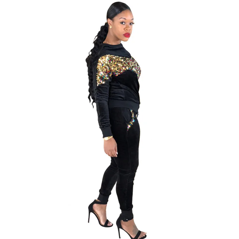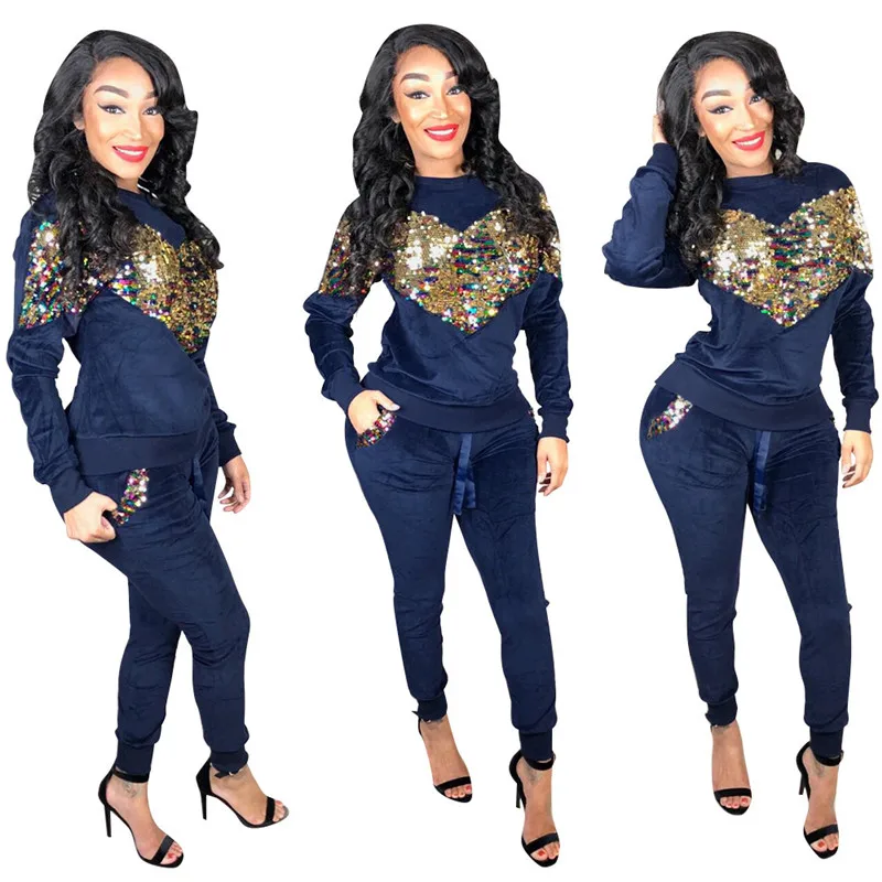 Buy Sexy Noble Women Jumpsuit Two Pieces Set Jumpsuit Heart-shaped Sequins Front Top Jumpsuit Sequins Pockets Pants Vogue Jumpsuit