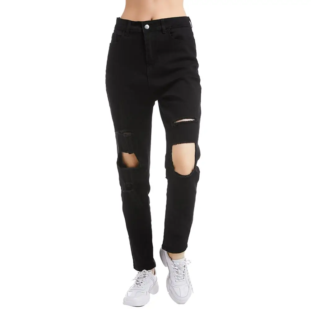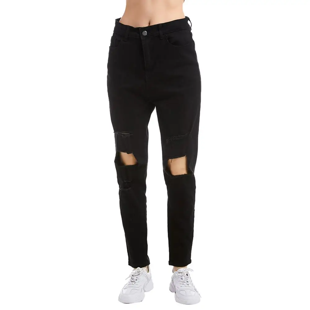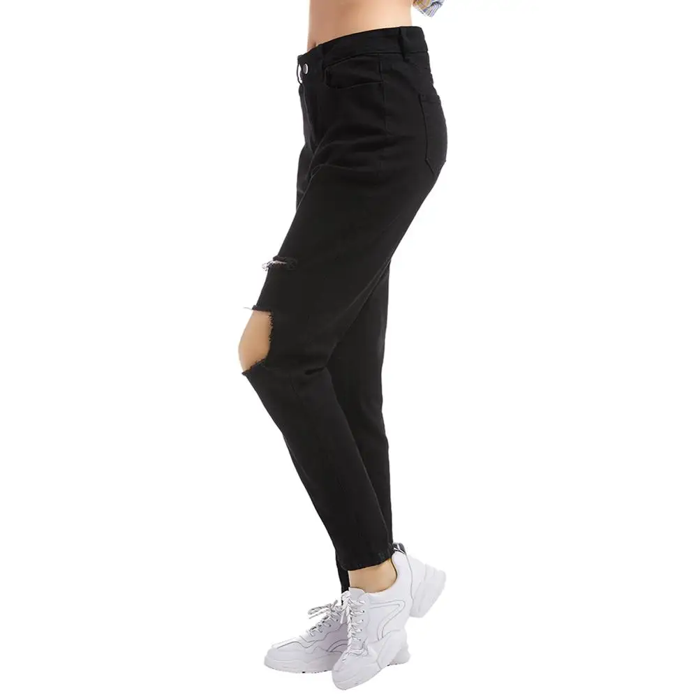 Sale Women's Black High Waist Ripped Jeans Casual Straight Fashion Stretch Jeans Women's Autumn Pants