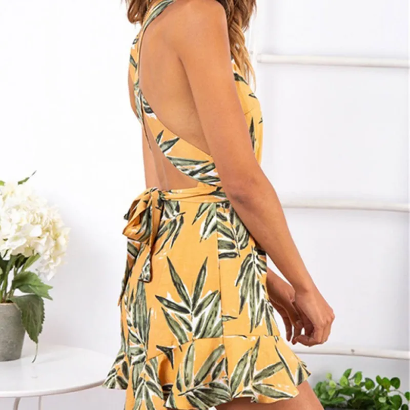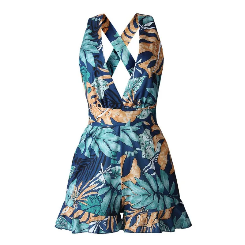 Get this Women\'s Fashion New Sexy V Straps Straps Backless Print Sling Romper Summer Beach Loose Jumpsuit with limited time discount by pressing the button below