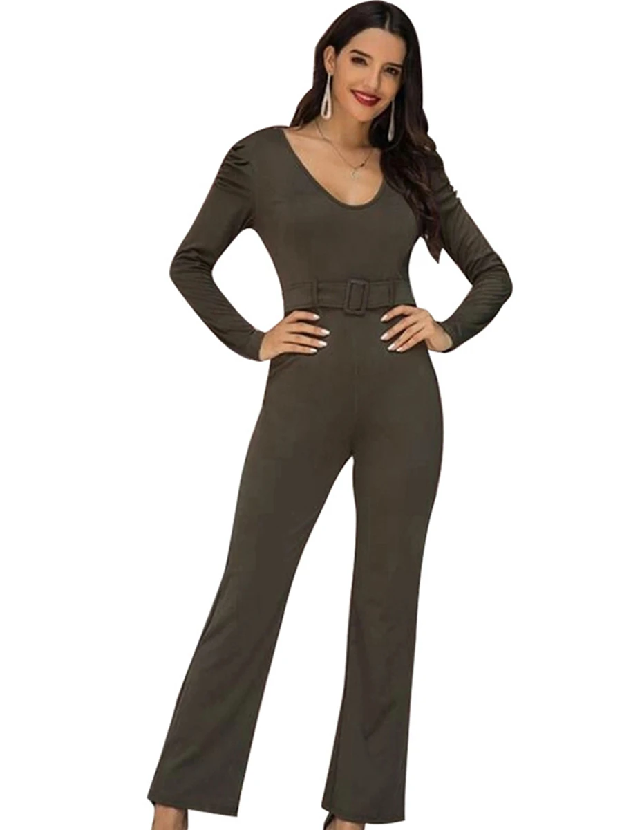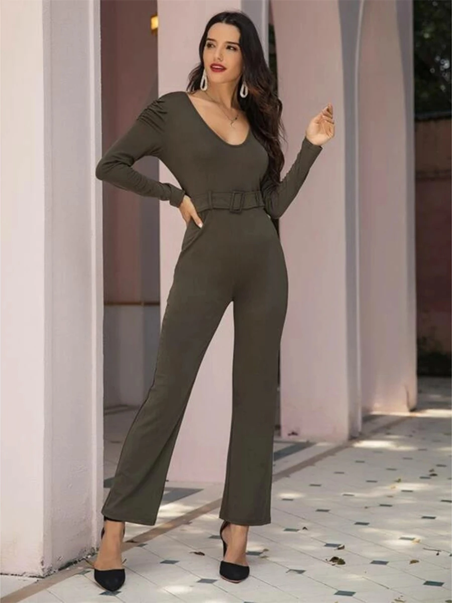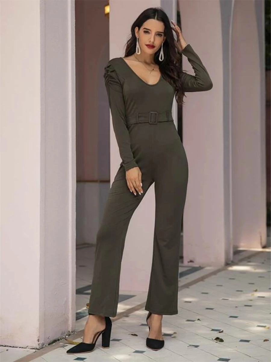 Get this Womens Straight High Waist Jumpsuits 2020 Summer Solid Color Office Lady Pants Playsuits New Fashion Long Sleeve Slim Romper with limited time discount by pressing the button below