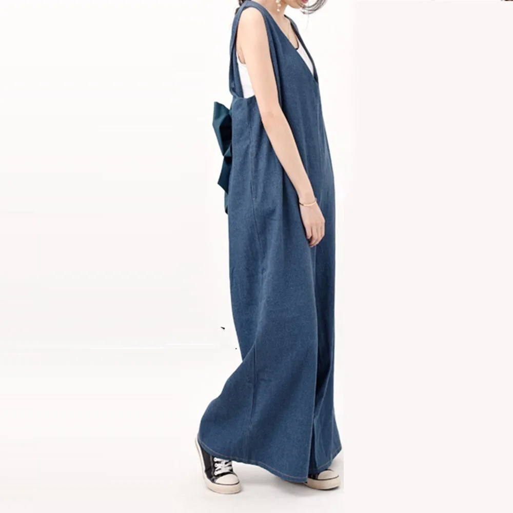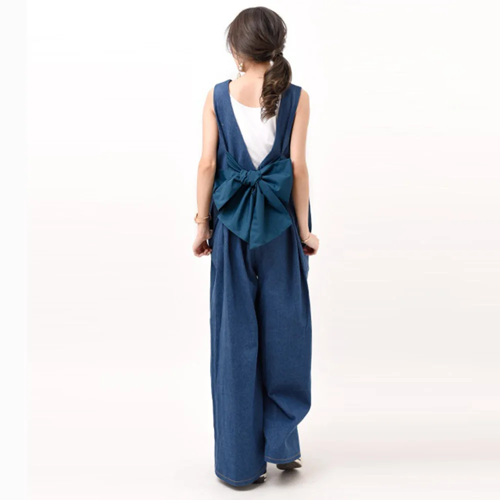 Best Offer Summer Korean Style Women Plus Size Loose Wide Legs Backless Bowknot Female Rompers