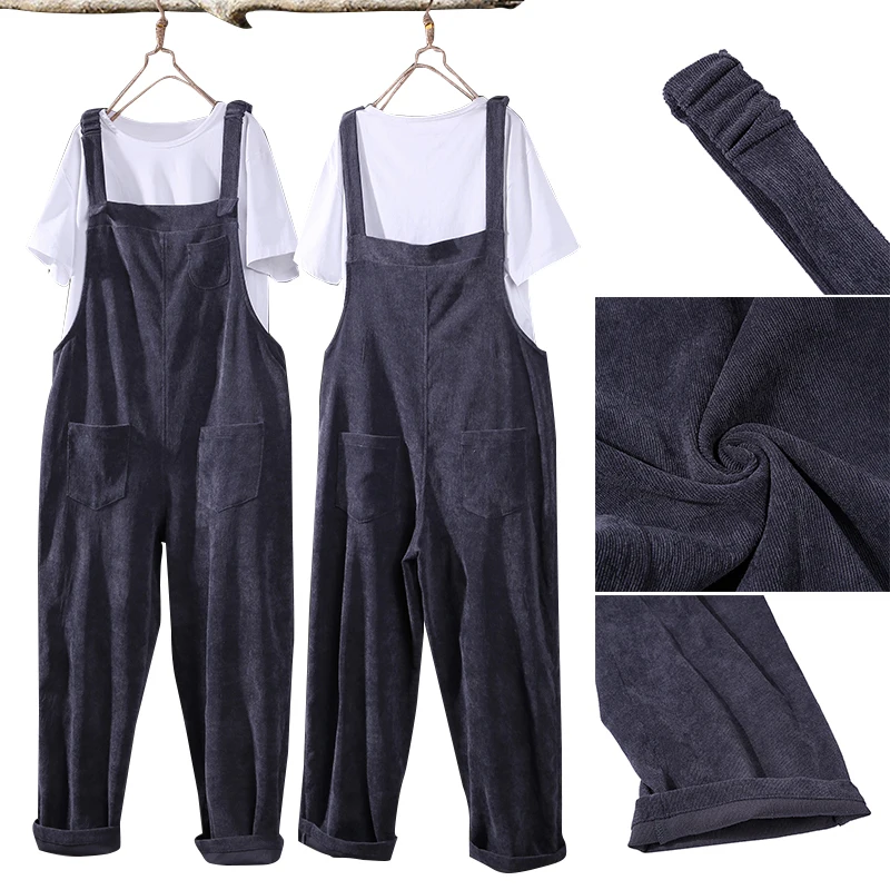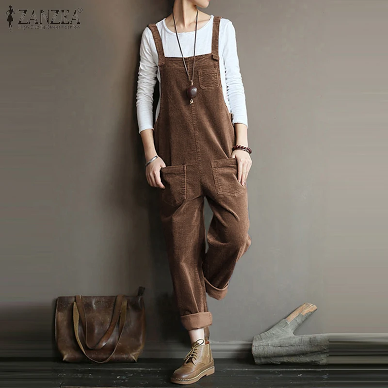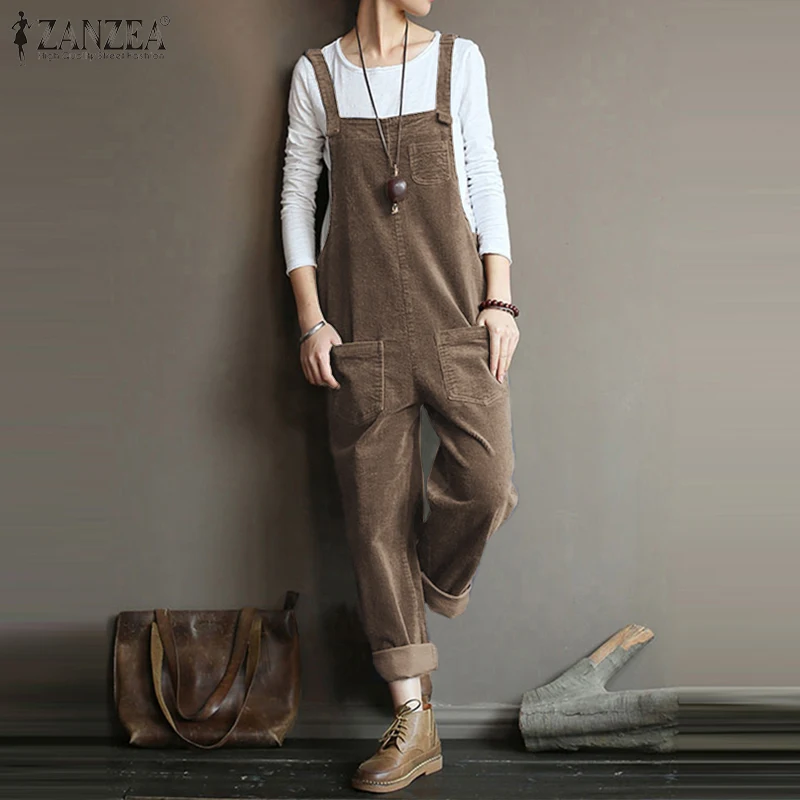 Images of ZANZEA Vintage Corduroy Jumpsuits Women Jumpsuits Casual Straps Overalls Loose Harem Pants Rompers Female Dungarees Playsuits :