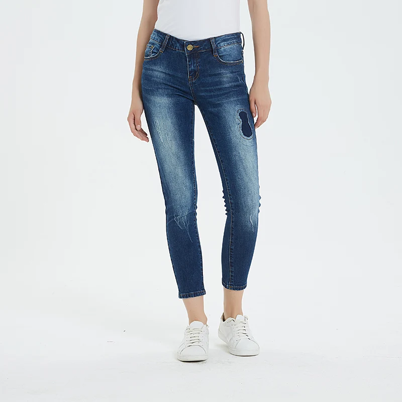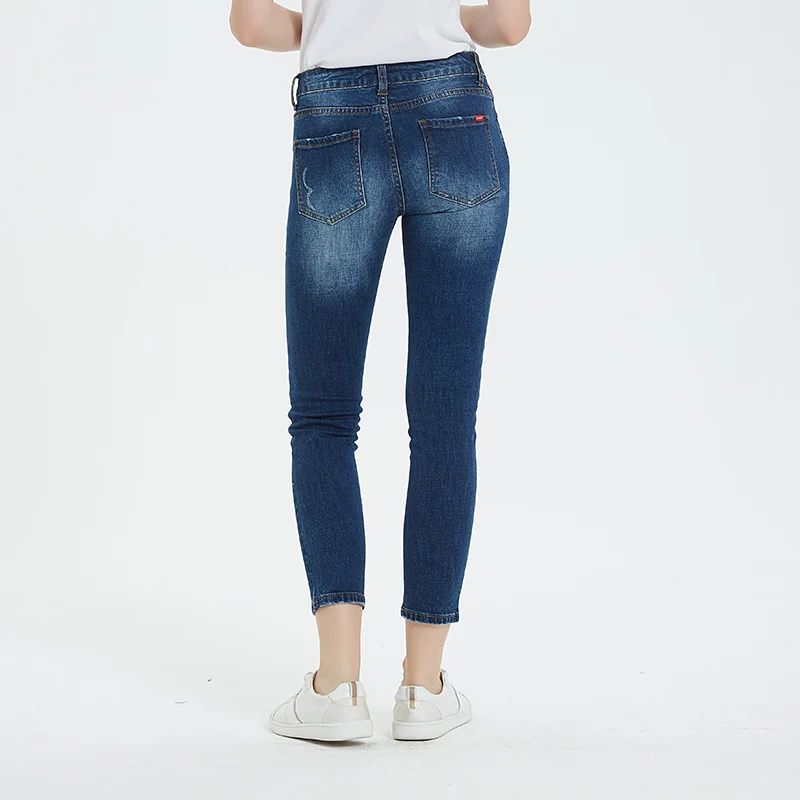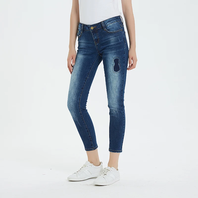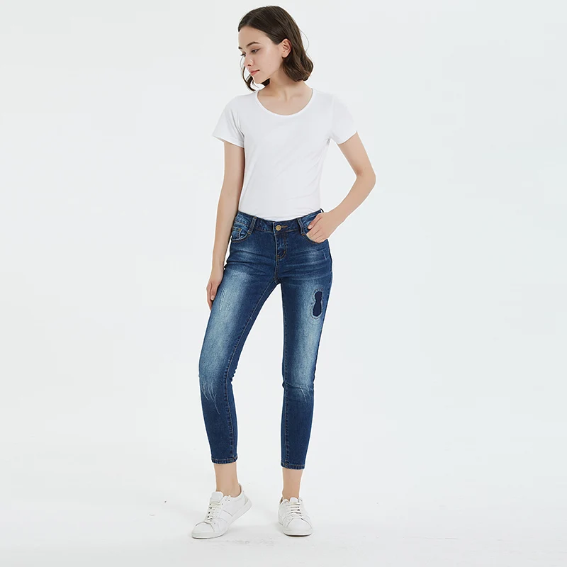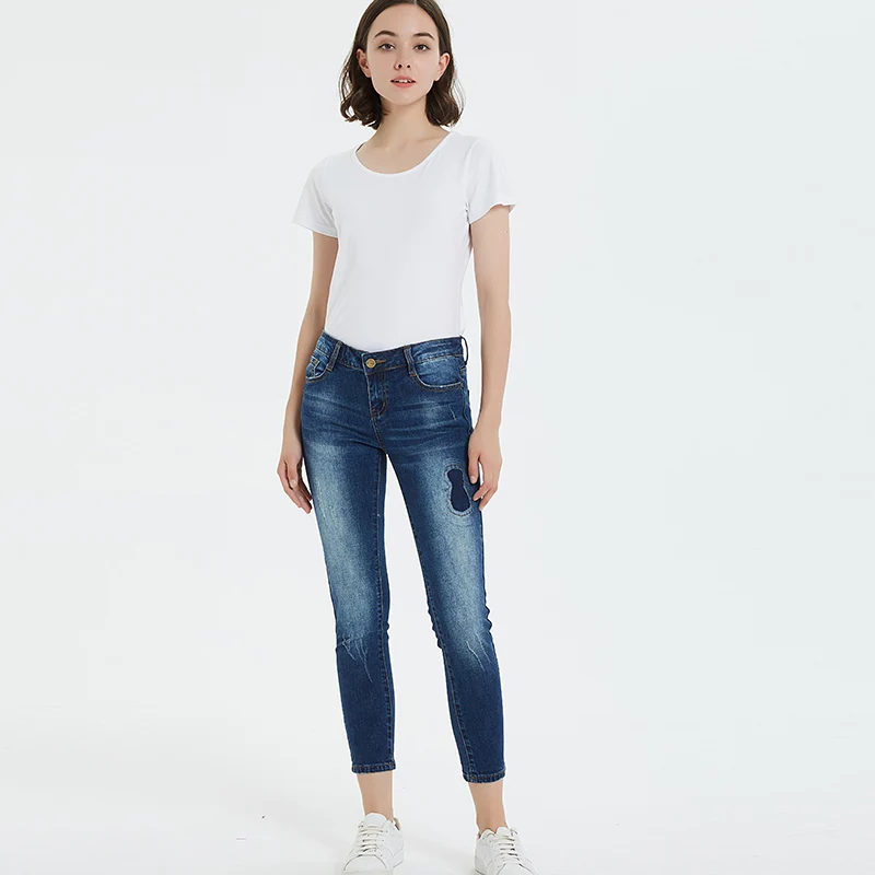 Images of 2019 Jeans Woman Mid Waist Ankle-Length Streetwear Cotton Bleached Patchwork Skinny Ladies Jeans Plus Size 3XL :