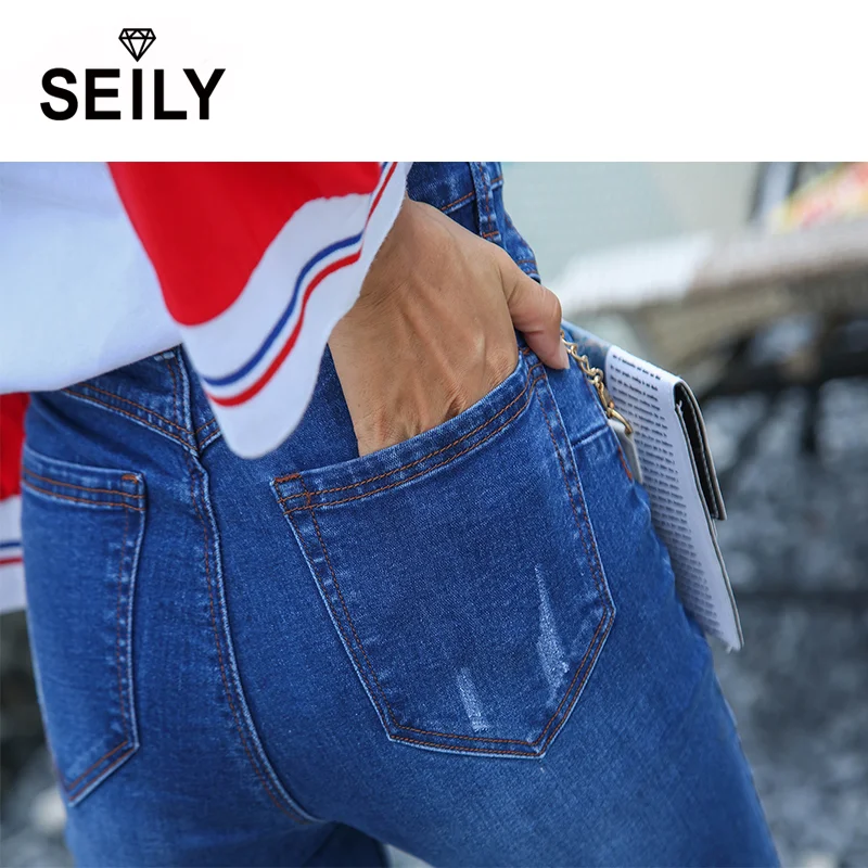 Images of 2020 Classic High Waist Stretch Jeans Woman Slim Fit Skinny Denim Pencil Pants Ripped Washed Denim Jeans For Women :